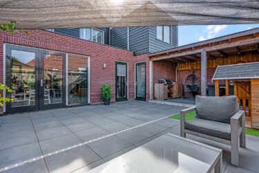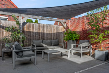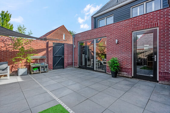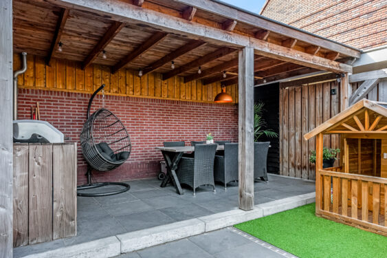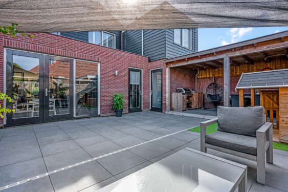 - Onderhoudsarme tuin met veranda en buitenkeuken.