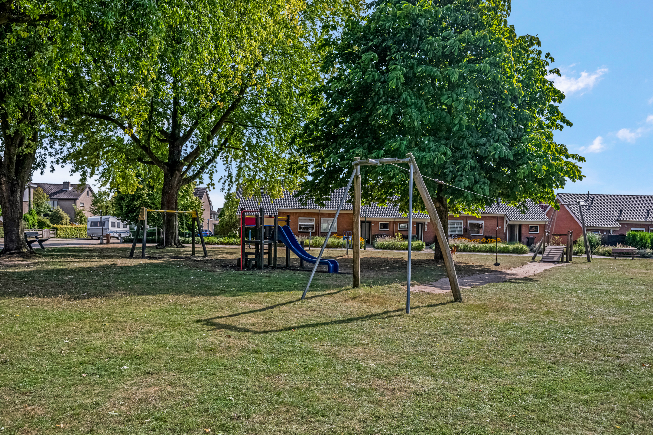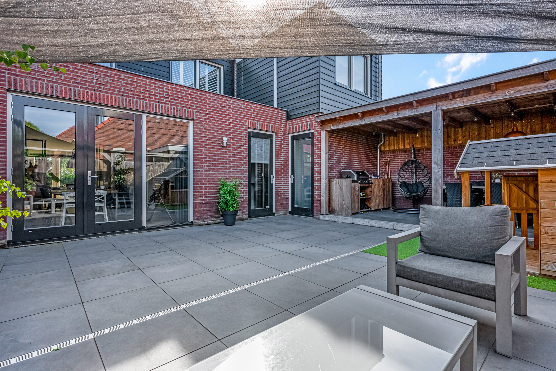 De woning ligt op een fraaie hoeklocatie met vrij uitzicht over een speelweide. De onderhoudsvriendelijke tuin is rondom aangelegd, met een zonnige veranda, buitenkeuken en veel privacy.