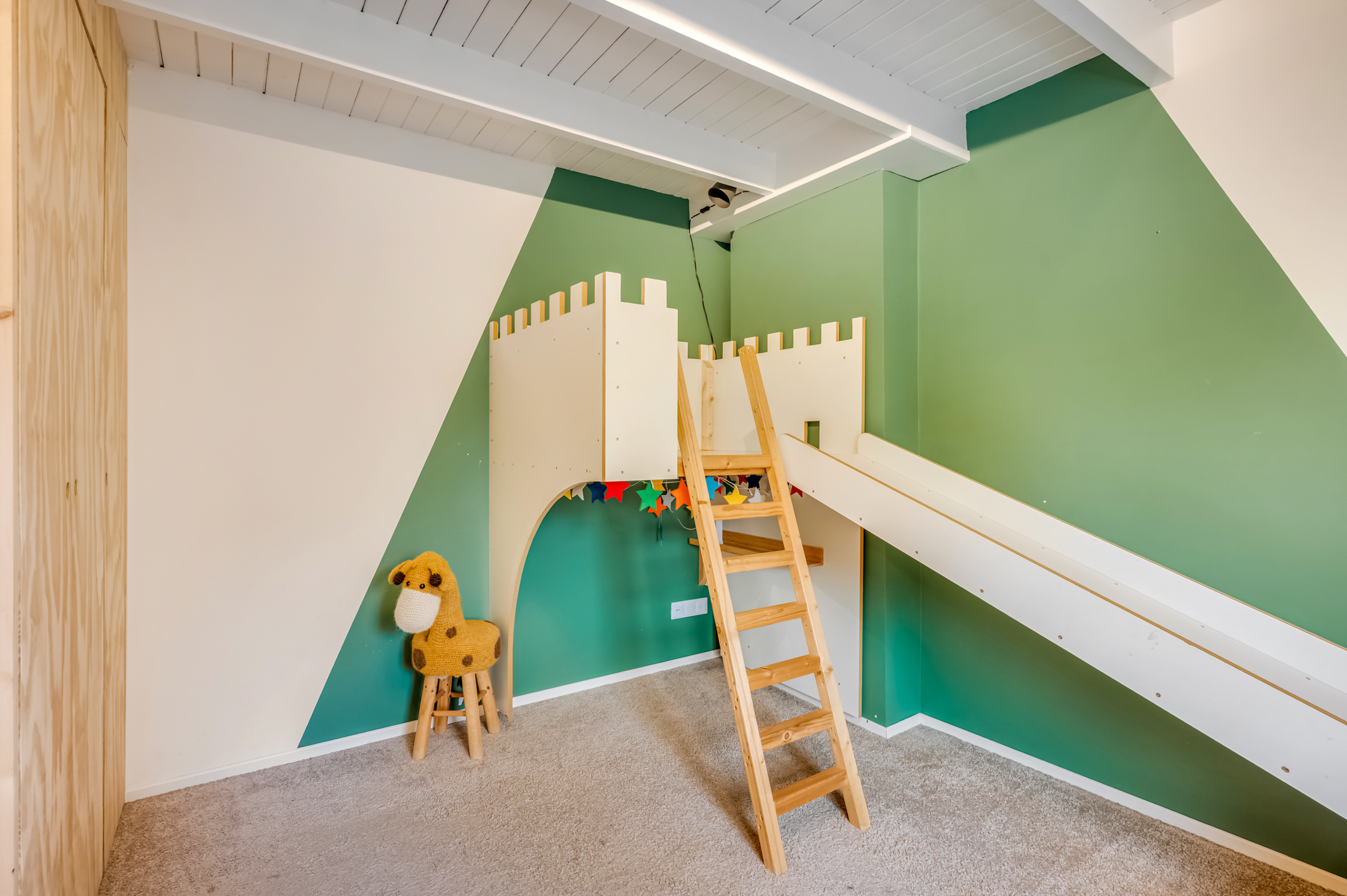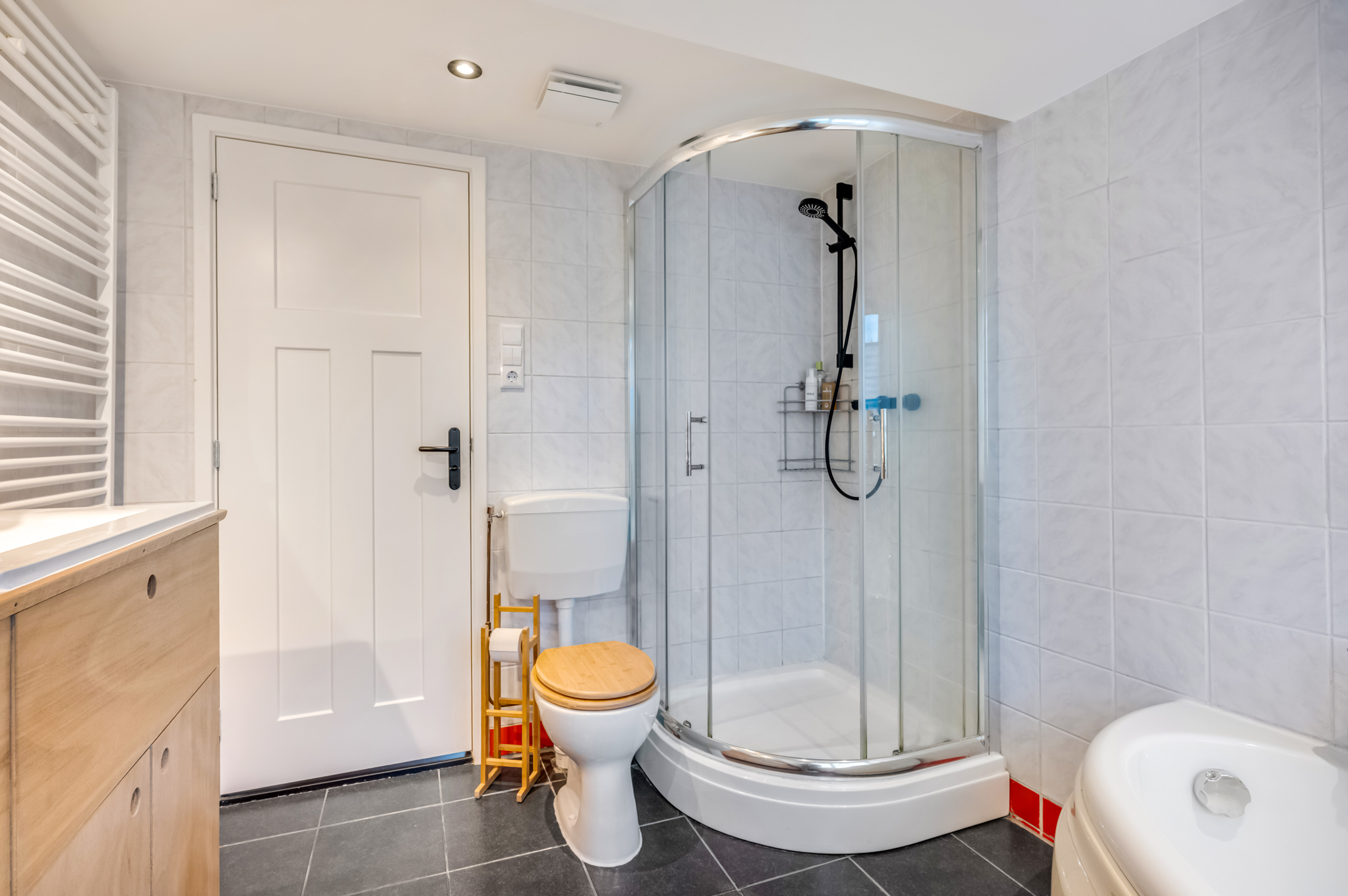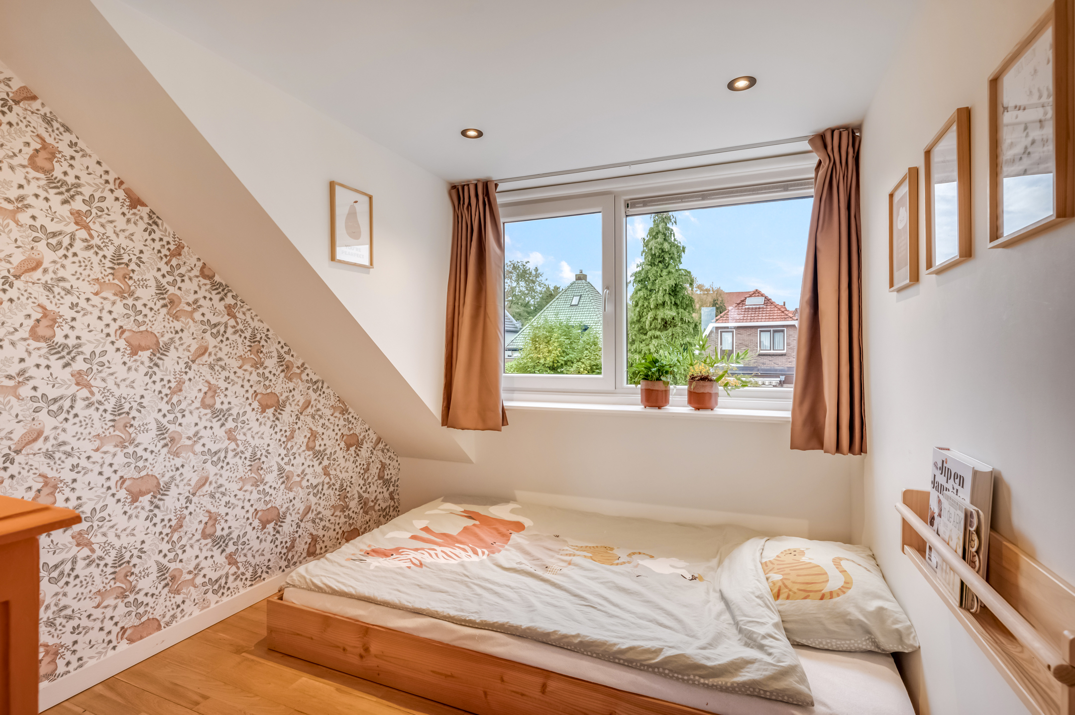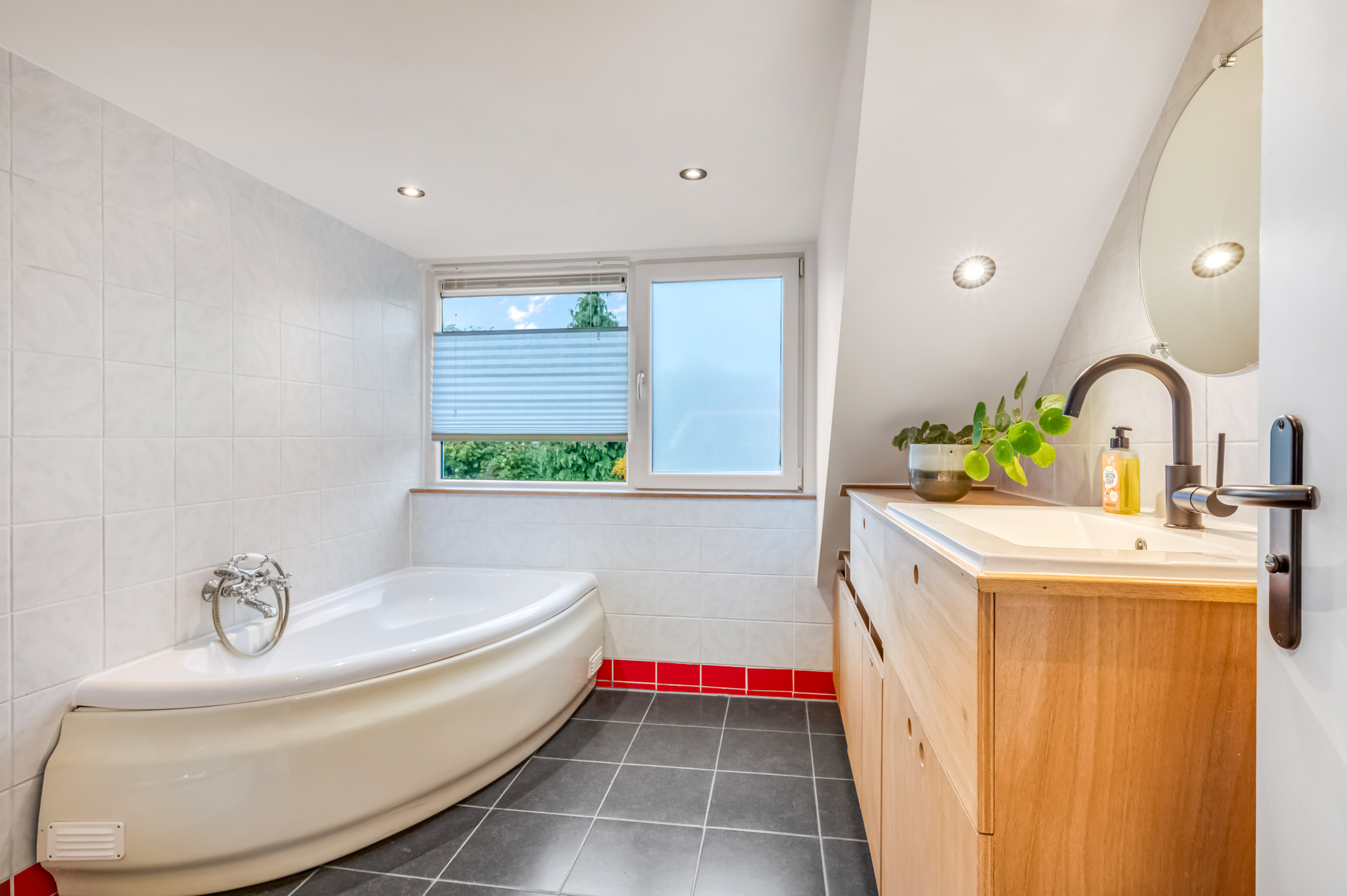 De 3e slaapkamer is eveneens voorzien van een dakkapel en plafond met inbouwspots. De badkamer is uitgevoerd met een ligbad, douchecabine met thermostaatkraan, toilet en designradiator.