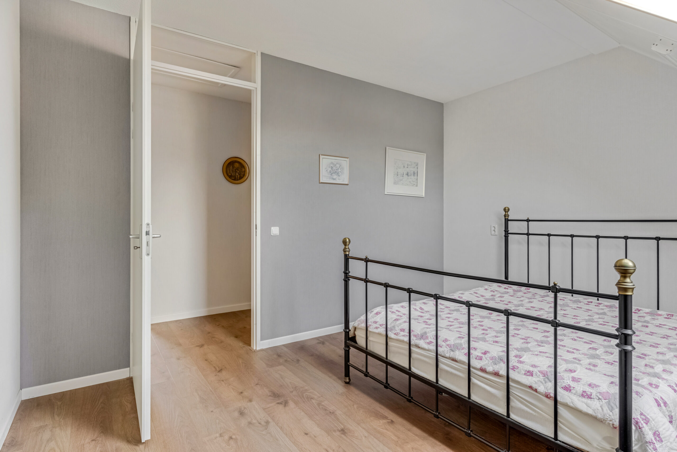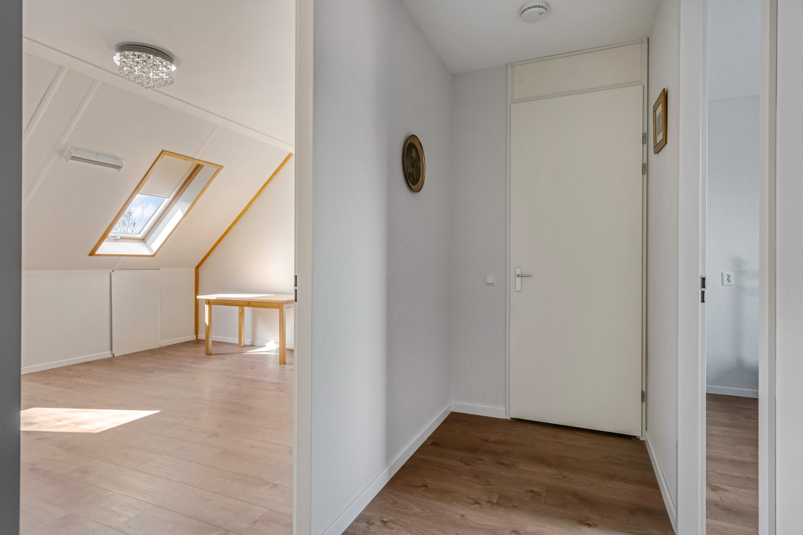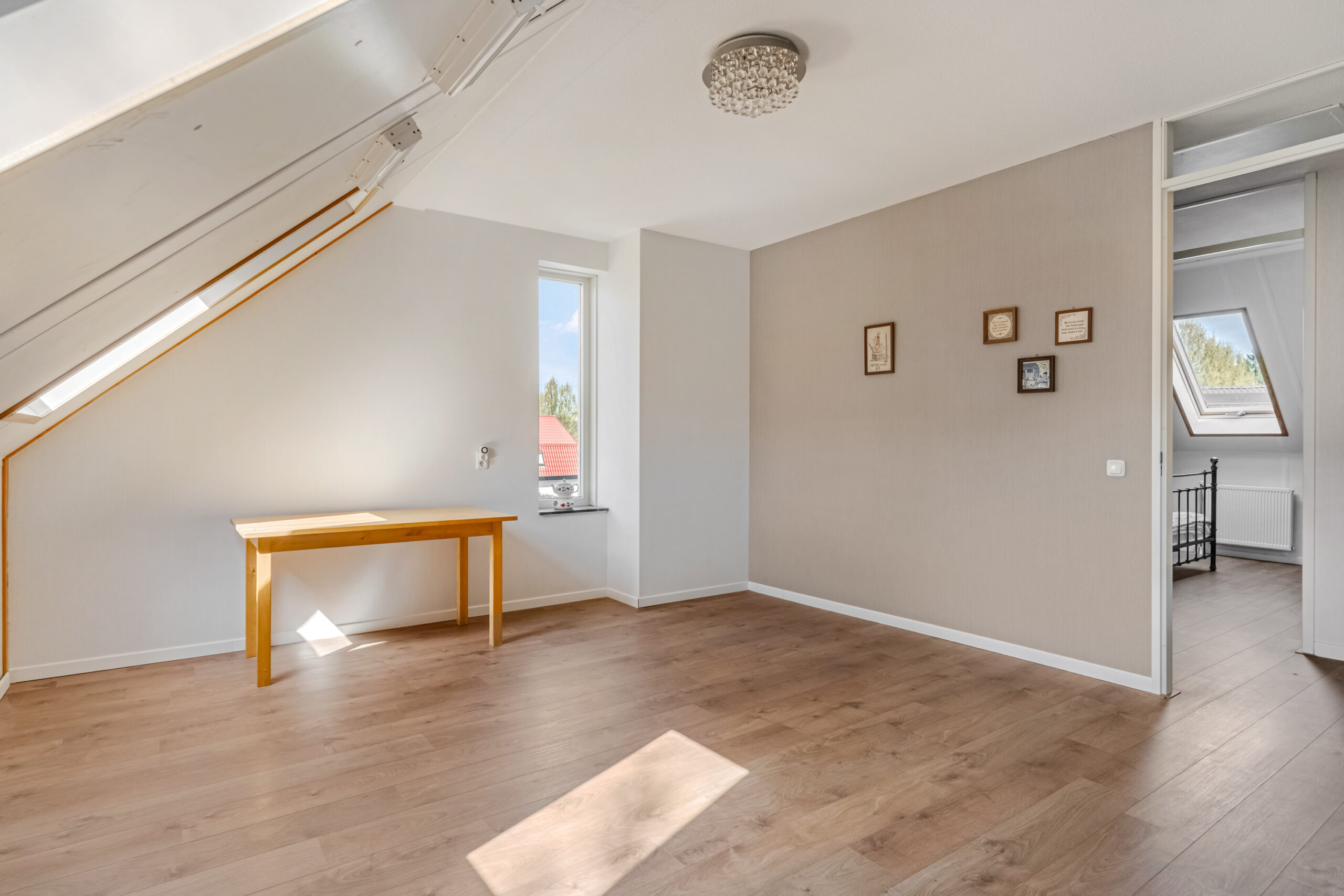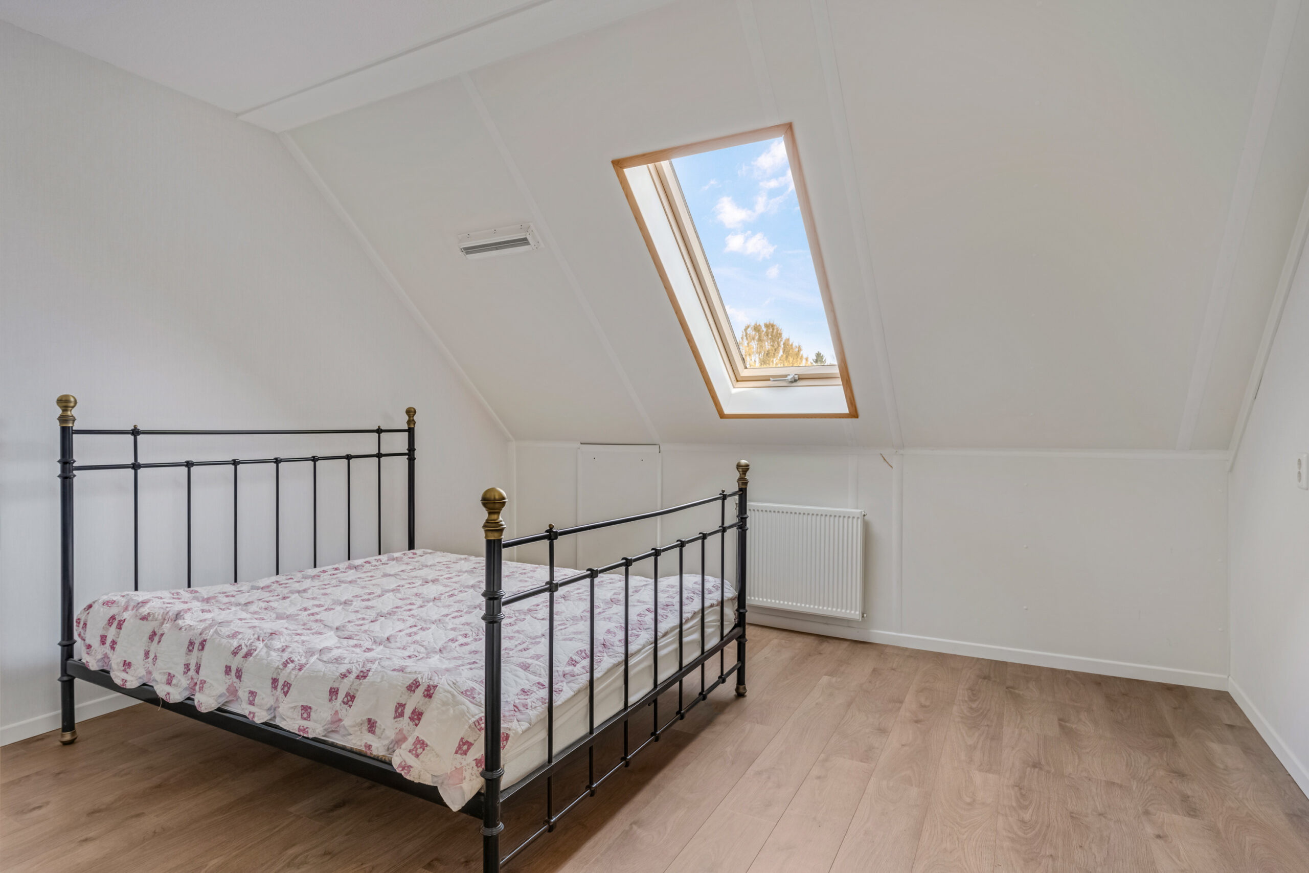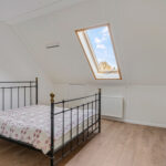 Op de eerste verdieping kom je uit op de overloop, die toegang geeft tot twee riante slaapkamers. Beide kamers zijn voorzien van dakvensters en beschikken over praktische bergruimte achter de knieschotten.