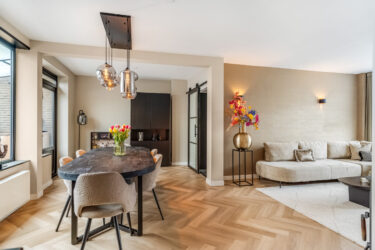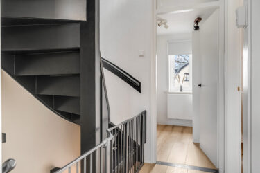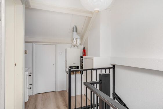 1e verdieping: overloop met trapopgang naar de 2e verdieping. Op deze verdieping bevinden zich 3 slaapkamers, waarvan de ouderslaapkamer is gelegen aan de achterzijde. De 2e slaapkamer is gesitueerd aan de voorzijde en de 3e kamer is thans in gebruik als walk in closet. De stijlvolle badkamer is geheel betegeld en beschikt over een royale inloopdouche met messing thermostaatkraan, extra breed wastafelmeubel met spiegel, 2e toilet, designradiator en plafond met inbouwspots.