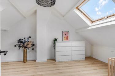 2e verdieping: voorzolder met knieschot bergruimte, dakraam, CV-opstelling en wastafel. Aansluitend is er een royale open zolderruimte met 2 dakramen en extra bergruimte in de knieschotten. Deze ruime zolderverdieping biedt de mogelijkheid om extra slaapkamers te creëren.