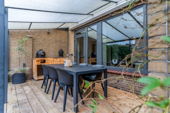 - Overkapping met zonnescherm;