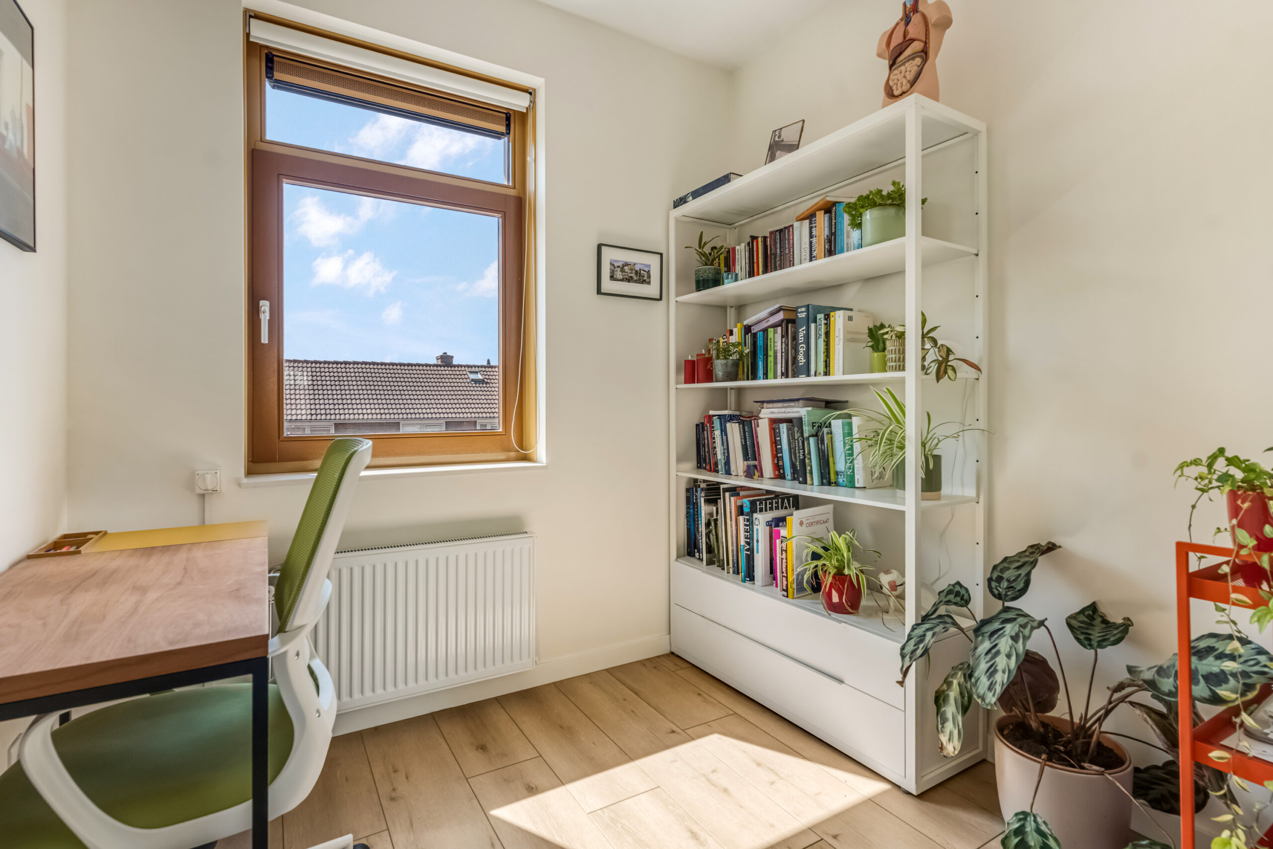2e verdieping: Via een vaste trap bereik je de 2e verdieping. Hier vind je de overloop met de cv-opstelling, wasmachineaansluiting en een dakraam. Daarnaast is er een 4e slaapkamer gerealiseerd. Deze kamer is verrassend licht en biedt een mooi uitzicht, met zelfs een glimp van de Cuneratoren en de Betuwe. Ideaal als slaapkamer, werkplek of hobbyruimte. In de knieschotten vind je ook nog eens extra bergruimte.