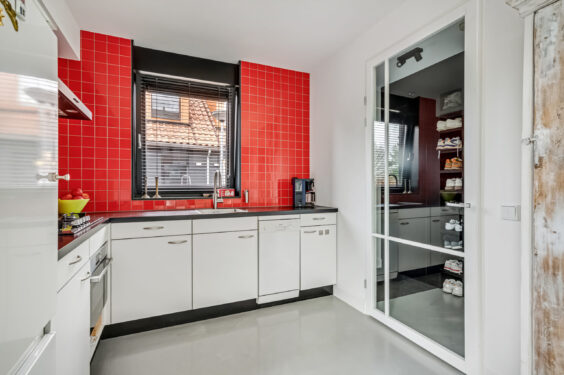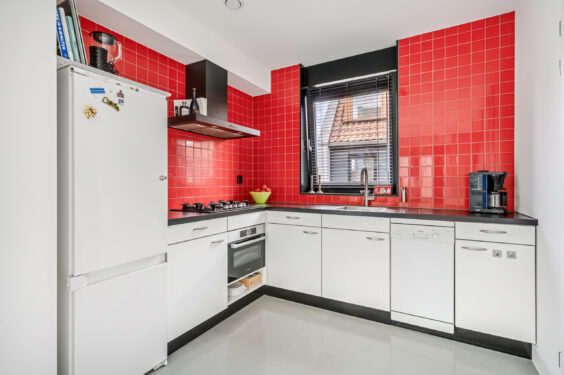 Via een deur in de hal kom je terecht in de woonkamer. Aan de voorzijde van de woning ligt de open keuken in een praktische hoekopstelling. Voorzien van alle benodigde apparatuur, waaronder zelfs een Quooker kraan en voldoende kastruimte, door de aanwezige bovenkasten.