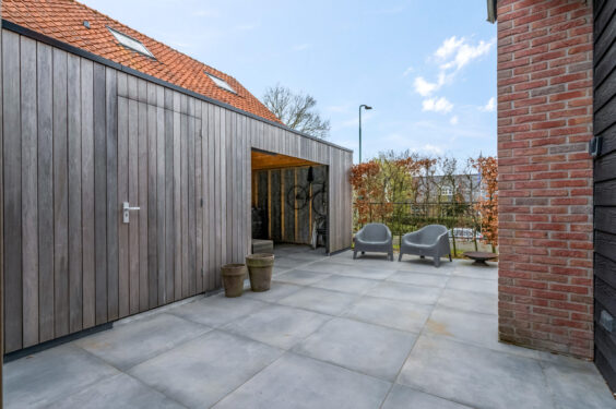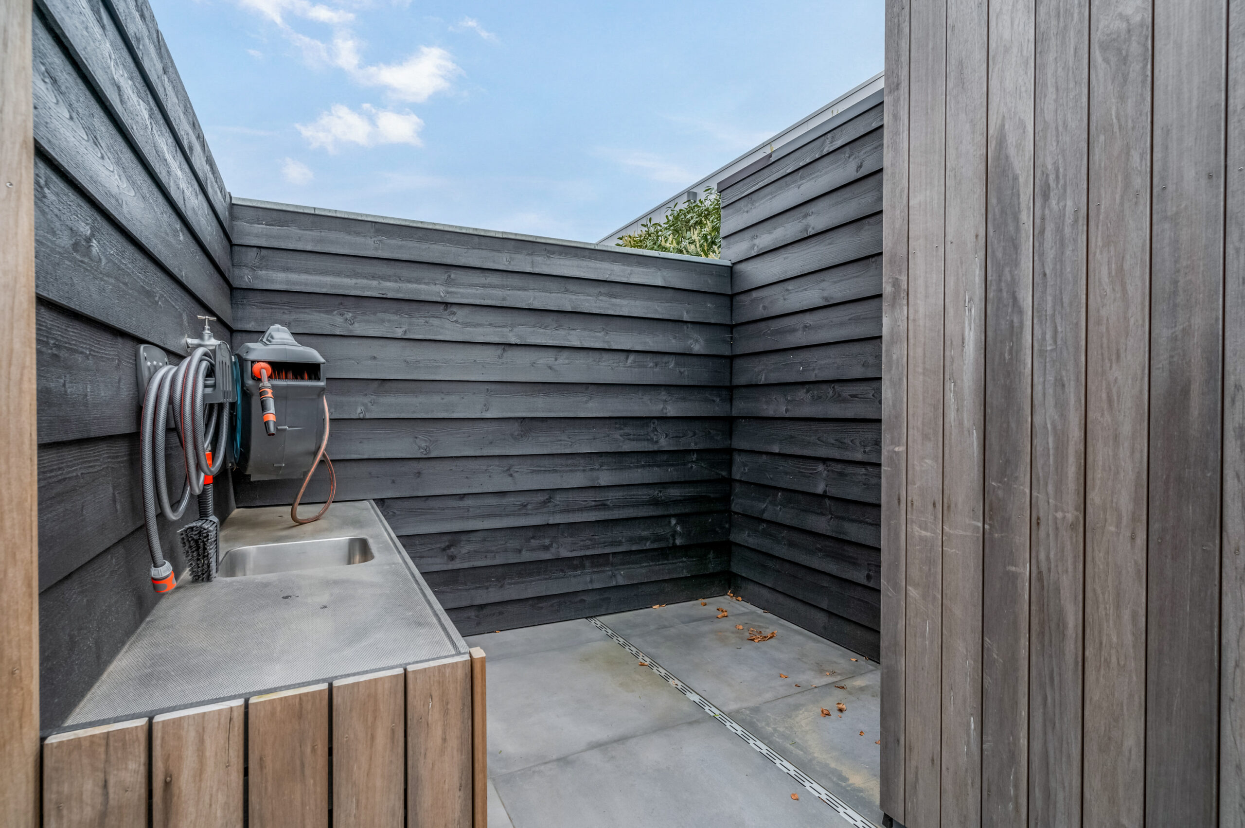 De zonnige tuin is precies wat je zoekt als je graag buiten zit, maar geen groot onderhoud wilt. Verzorgd aangelegd en met meerdere fijne plekken. Achterin vind je een riante houten berging voorzien van elektra en aangrenzend een gezellige veranda waar je beschut kunt genieten tot in de late uurtjes. Ook is er een praktische buitenwasplaats aanwezig, ideaal bijvoorbeeld na een fietstocht.