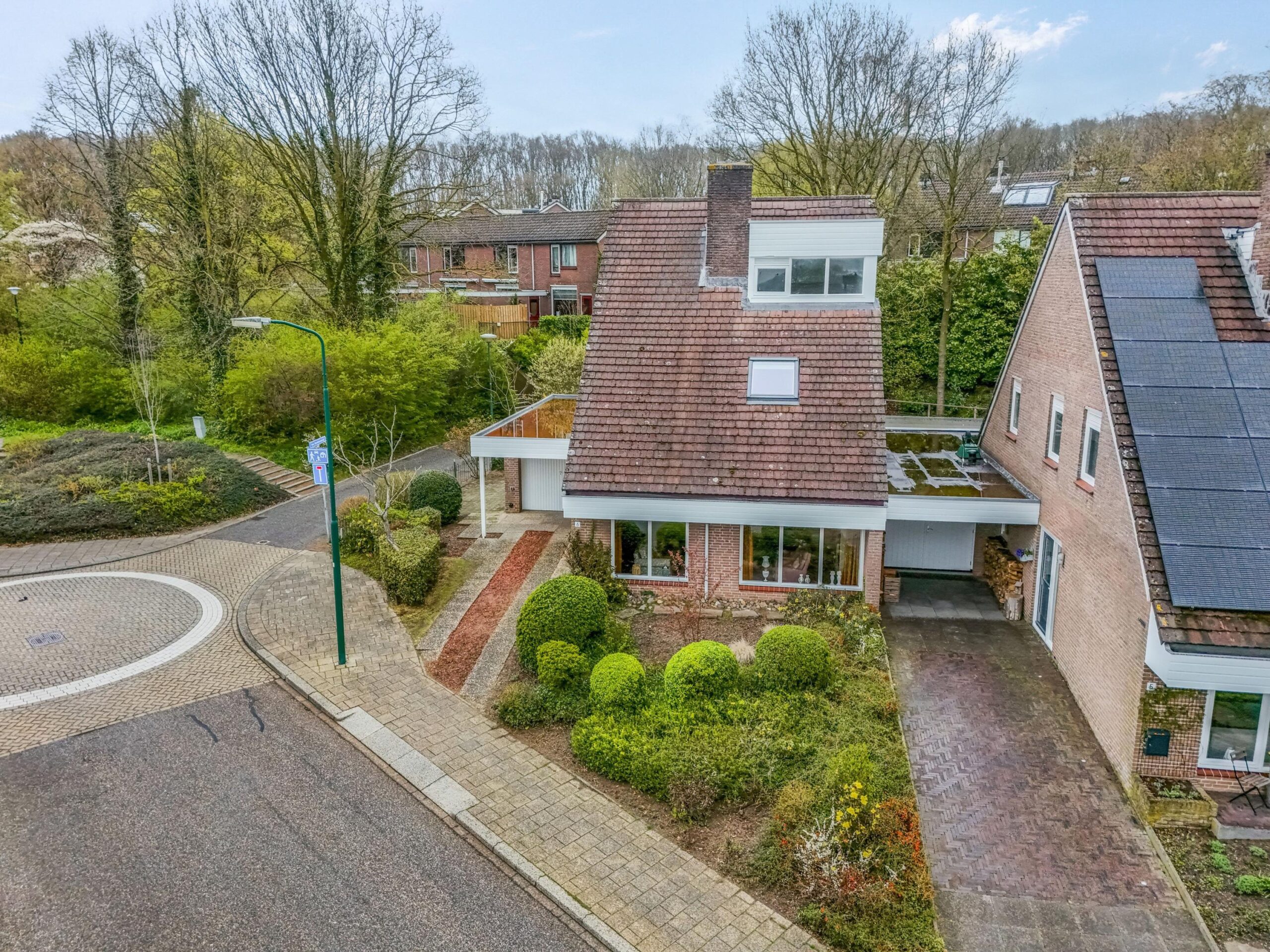 In geliefde woonomgeving op loopafstand van het stadscentrum en de bossen gelegen geschakelde VRIJSTAANDE WONING met GARAGE en heerlijke achtertuin.