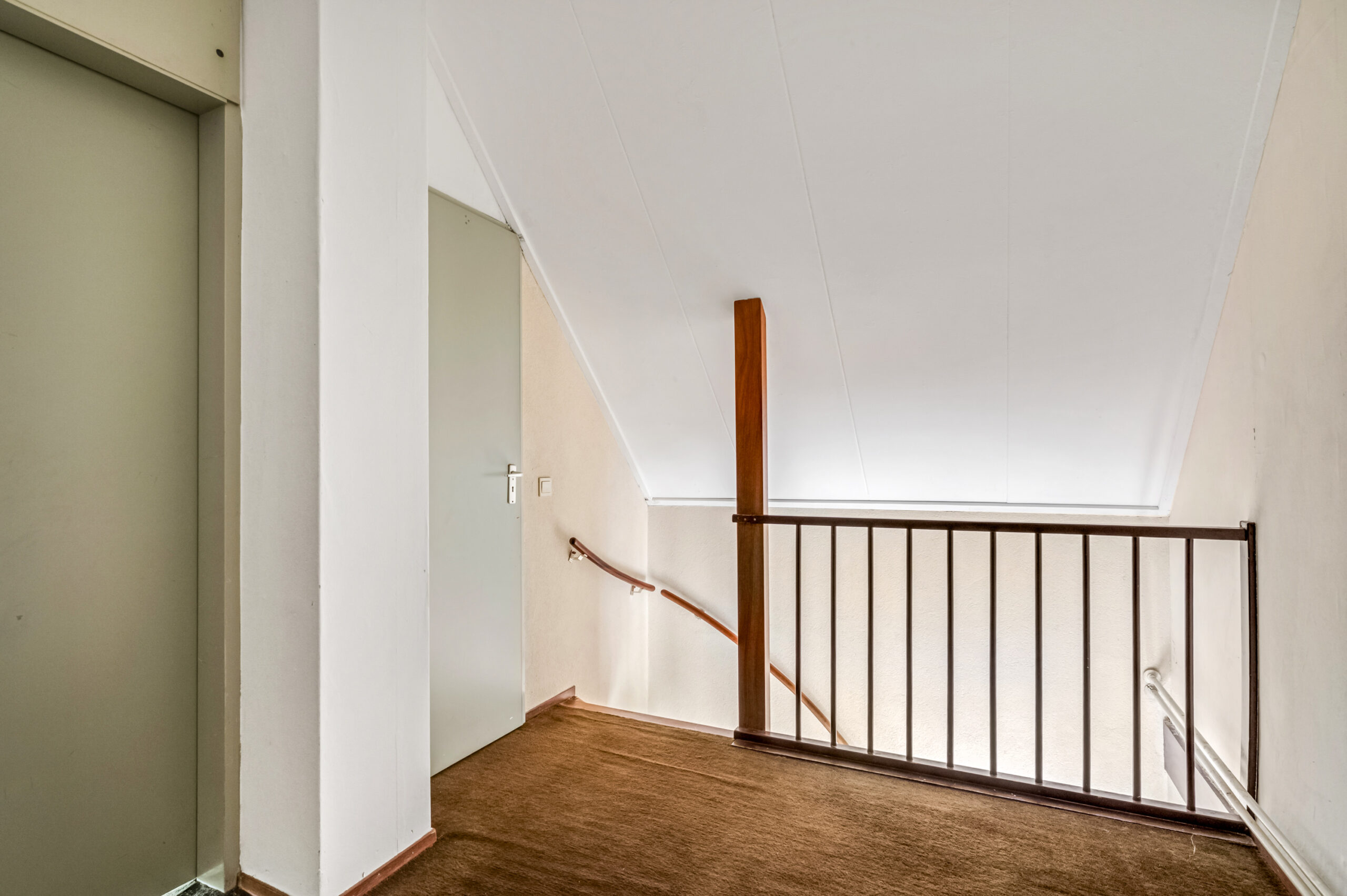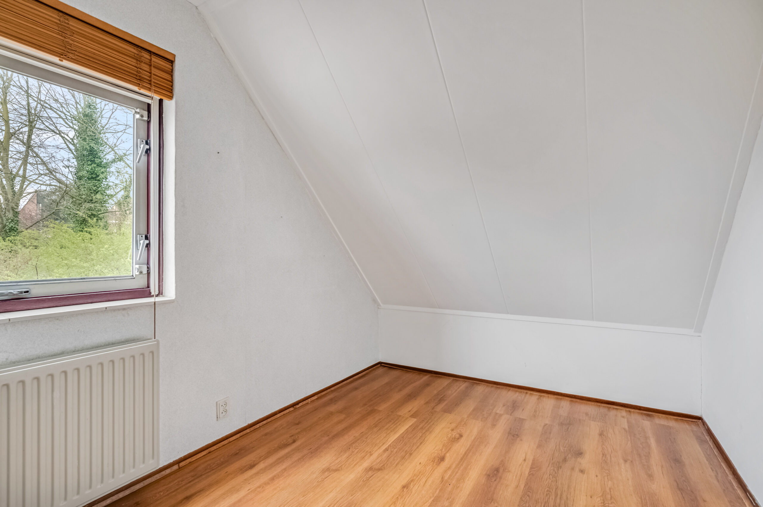 2e verdieping: ruime voorzolder met vaste kast voorzien van de CV-opstelling en mechanische ventilatie. Aansluitend is een 4e slaapkamer bereikbaar met dakkapel en fraai uitzicht over het mooie landschap van de Rijn en Uiterwaarden.