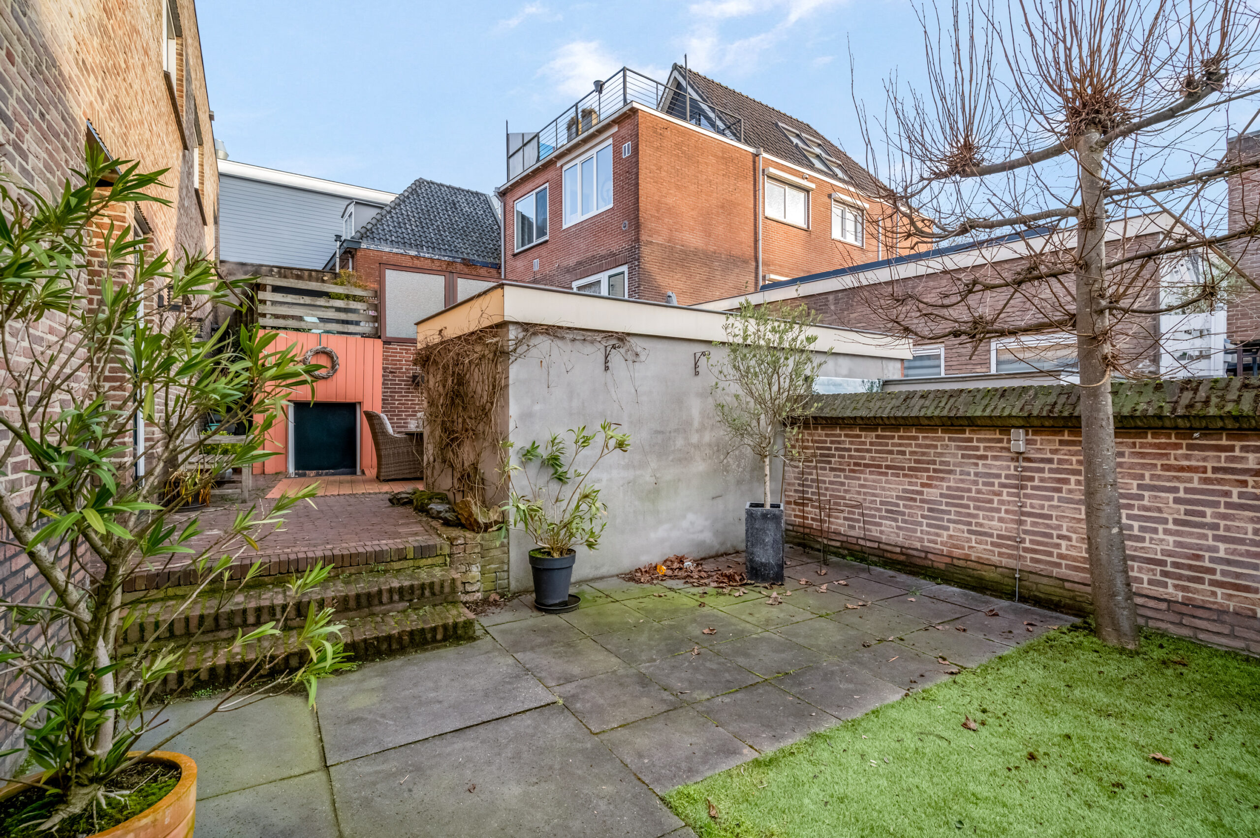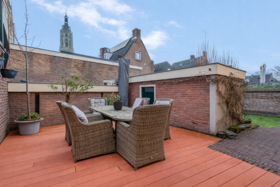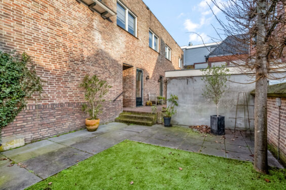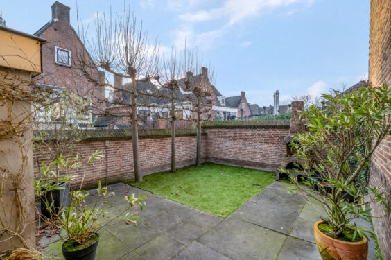 Buiten: De sfeervolle stadstuin heeft een ideale zonligging op het zuiden en hier is het heerlijk genieten van mooie lange zomerse avonden. Het 1e terras is voorzien van vlonders en staat, middels een klein niveauverschil, in verbinding met een lagergelegen terras voorzien van leibomen en gazon. De tuin is via een afsluitbare poort bereikbaar. Een heerlijke besloten plek met veel privacy!