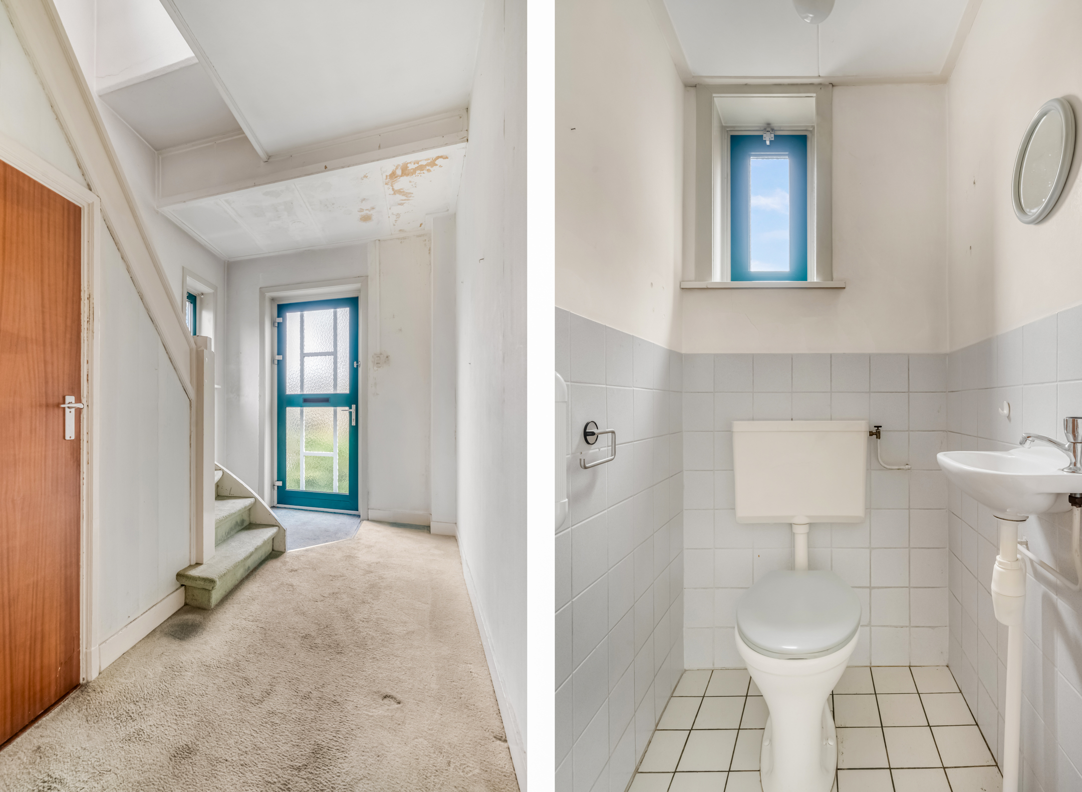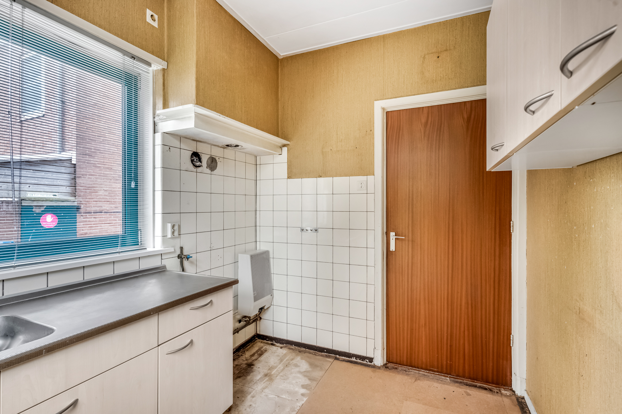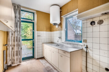 Begane grond: hal/entree met trapopgang en toegang tot toiletruimte en provisiekelder. De lichte doorzonwoonkamer is voorzien van een gashaard en schuifpui naar de achtertuin. De dichte keuken beschikt over een eenvoudige wandopstelling, was aansluiting, 80 liter boiler en heeft een deur naar de achtertuin.