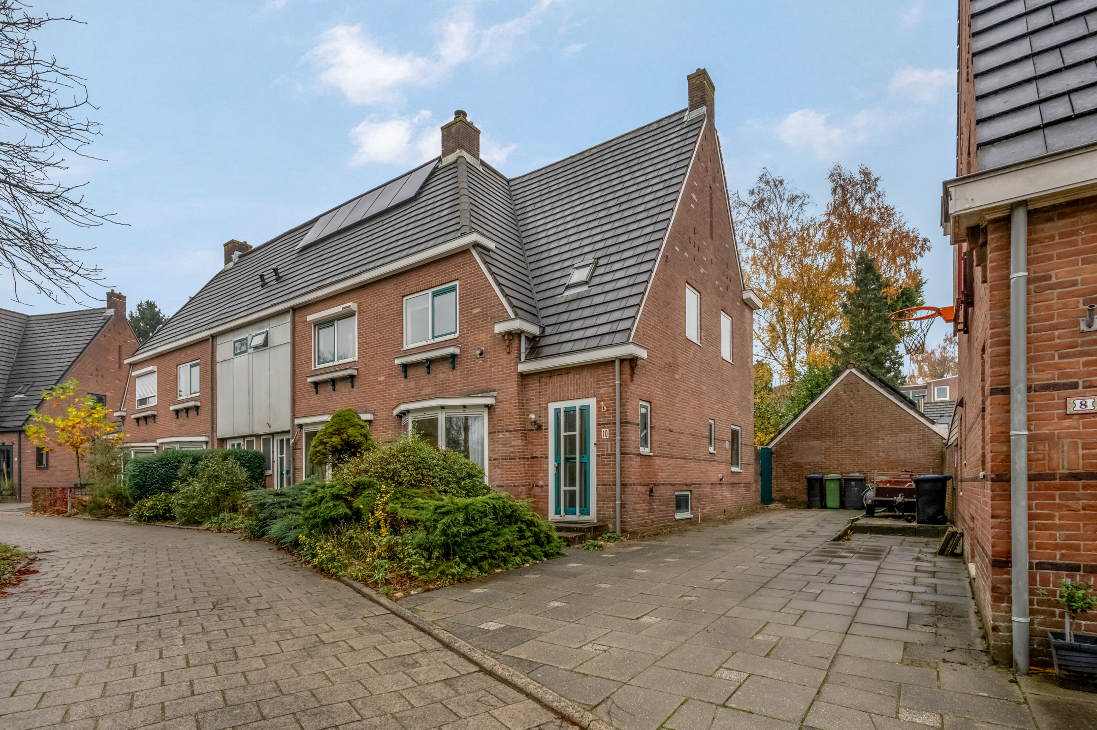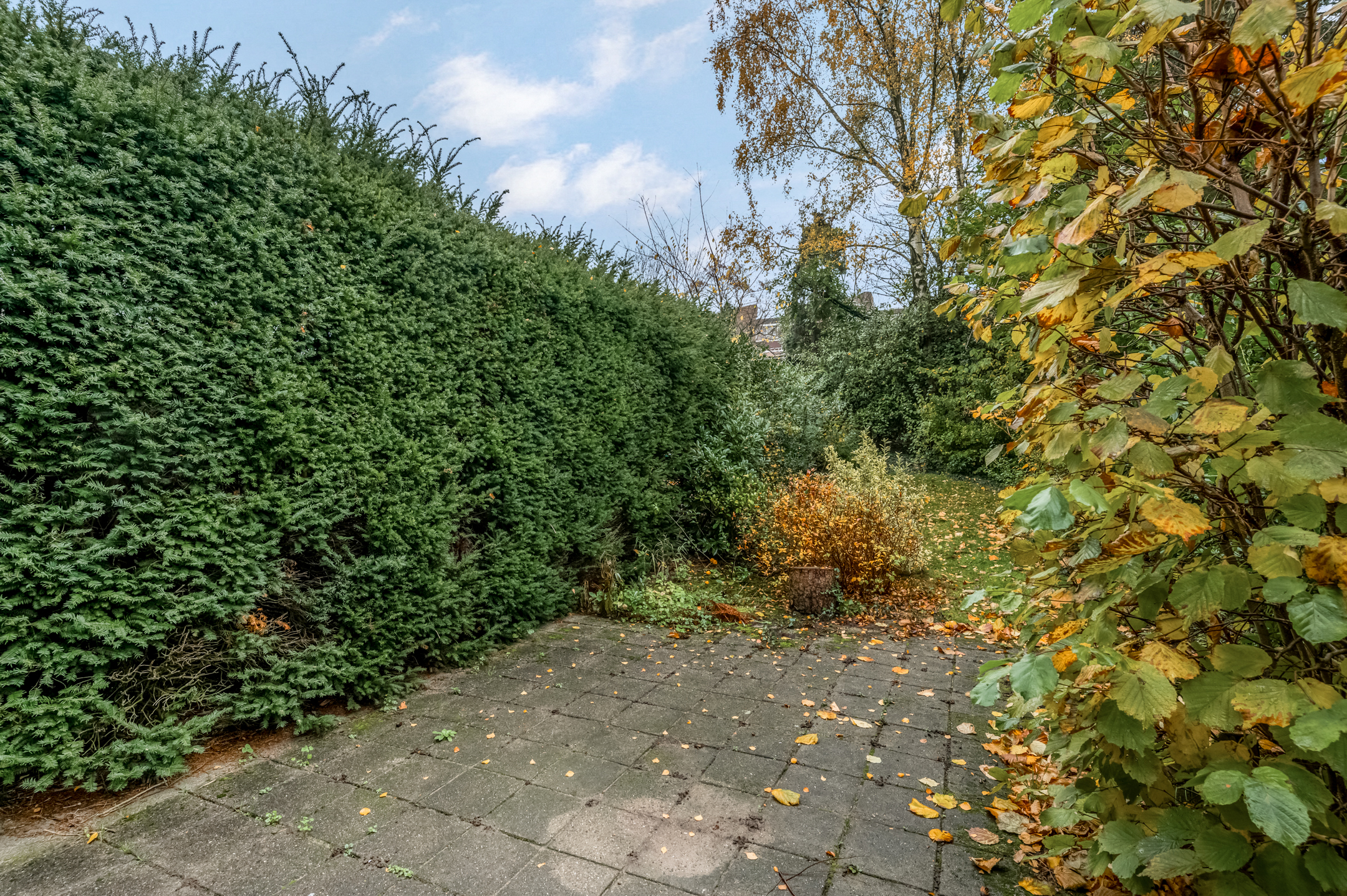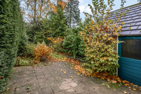 Buiten: De voortuin bestaat uit borders en sierbestrating. Parkeren kan op eigen terrein. De ruime achtertuin beschikt over een terras, gevarieerde beplanting en gazon. Een fijne, besloten plek met veel privacy. De vrijstaande stenen berging is opgetrokken uit halfsteens gevels, heeft een pannendak en is voorzien van elektra. De achtertuin is bereikbaar via een afsluitbare poort.
