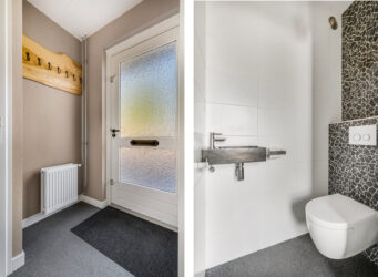 Via de voortuin bereik je de entree van de woning. In de hal bevinden zich de meterkast, een moderne toiletruimte met fonteintje en de toegang tot de woonkamer.