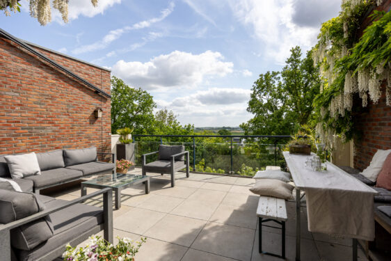 Uniek gelegen op de flank van de Grebbeberg met werkelijk prachtig uitzicht over het rivierlandschap en de Betuwe, staat deze in 2008 onder architectuur gebouwde, energiezuinige RIJNVILLA met maar liefst drie woonlagen, een sfeervolle terrastuin op de begane grond en ruime zonneterrassen op de eerste en tweede verdieping. Hier geniet je van wonen in het groen, zonder het gedoe van een tuin. De villa staat in een doodlopende straat die eindigt in de natuur waardoor er…