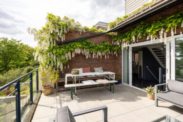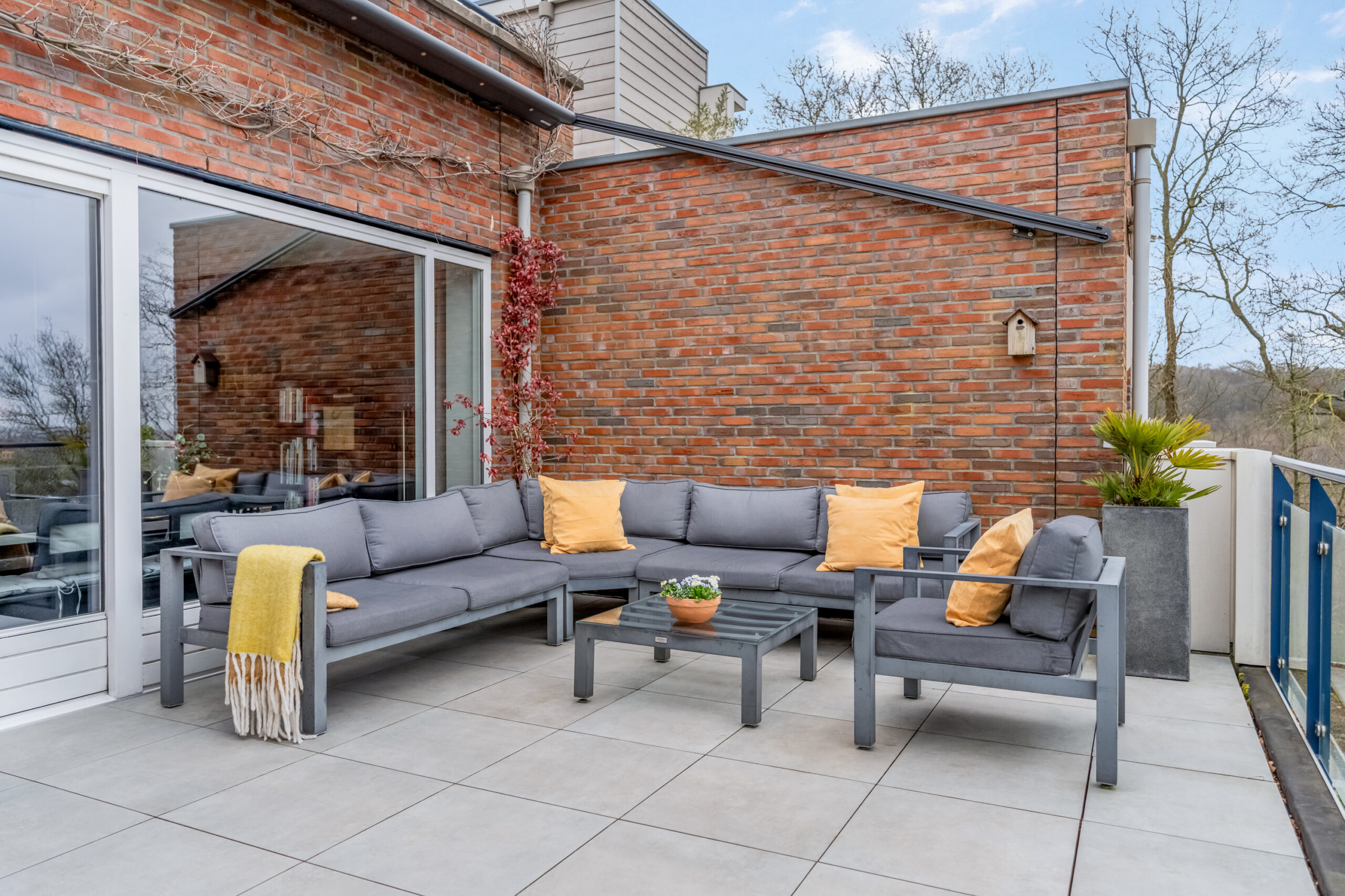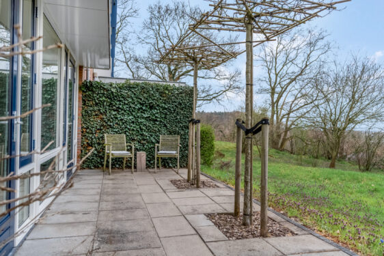 - Zonnige en besloten achtertuin/zonneterras direct grenzend aan het achterliggende groen met zeer veel privacy.