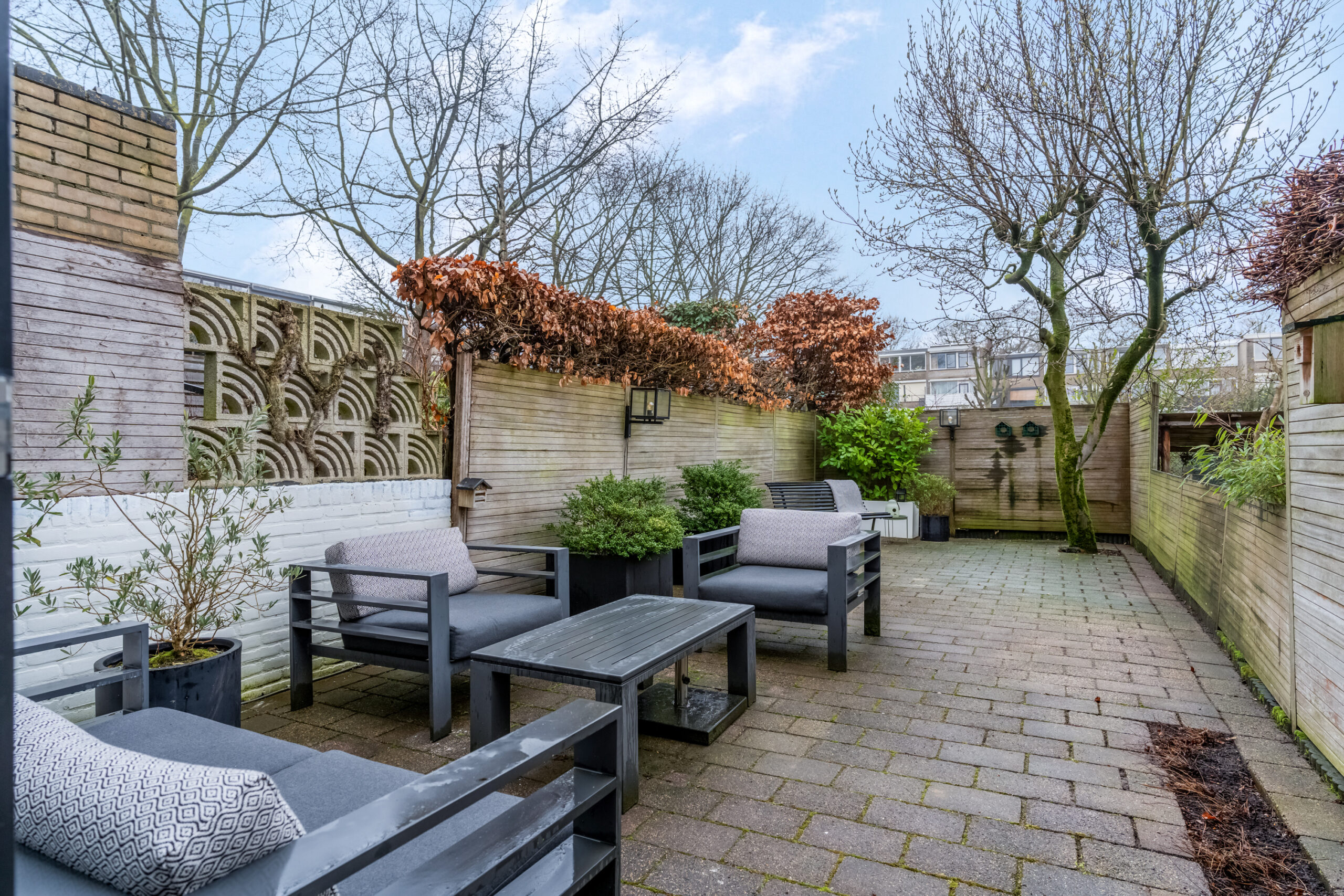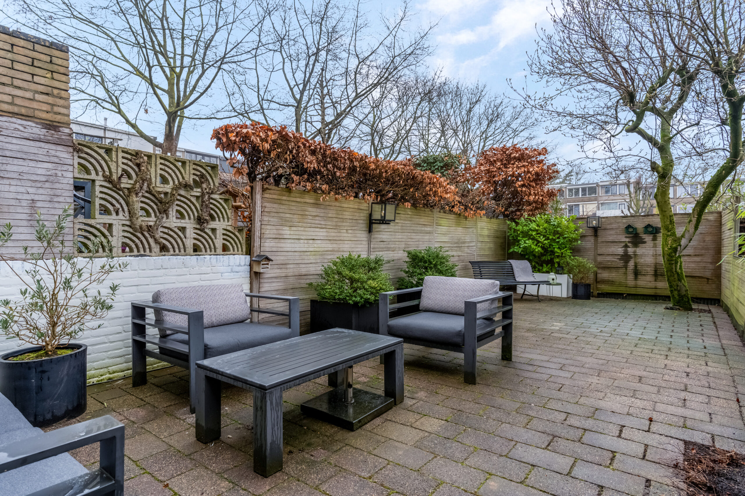 Buiten: Aan de voorzijde is er parkeergelegenheid op eigen terrein. De achtertuin ligt op het zuidoosten en is onderhoudsvriendelijk aangelegd, waardoor je hier al snel comfortabel buiten zit.