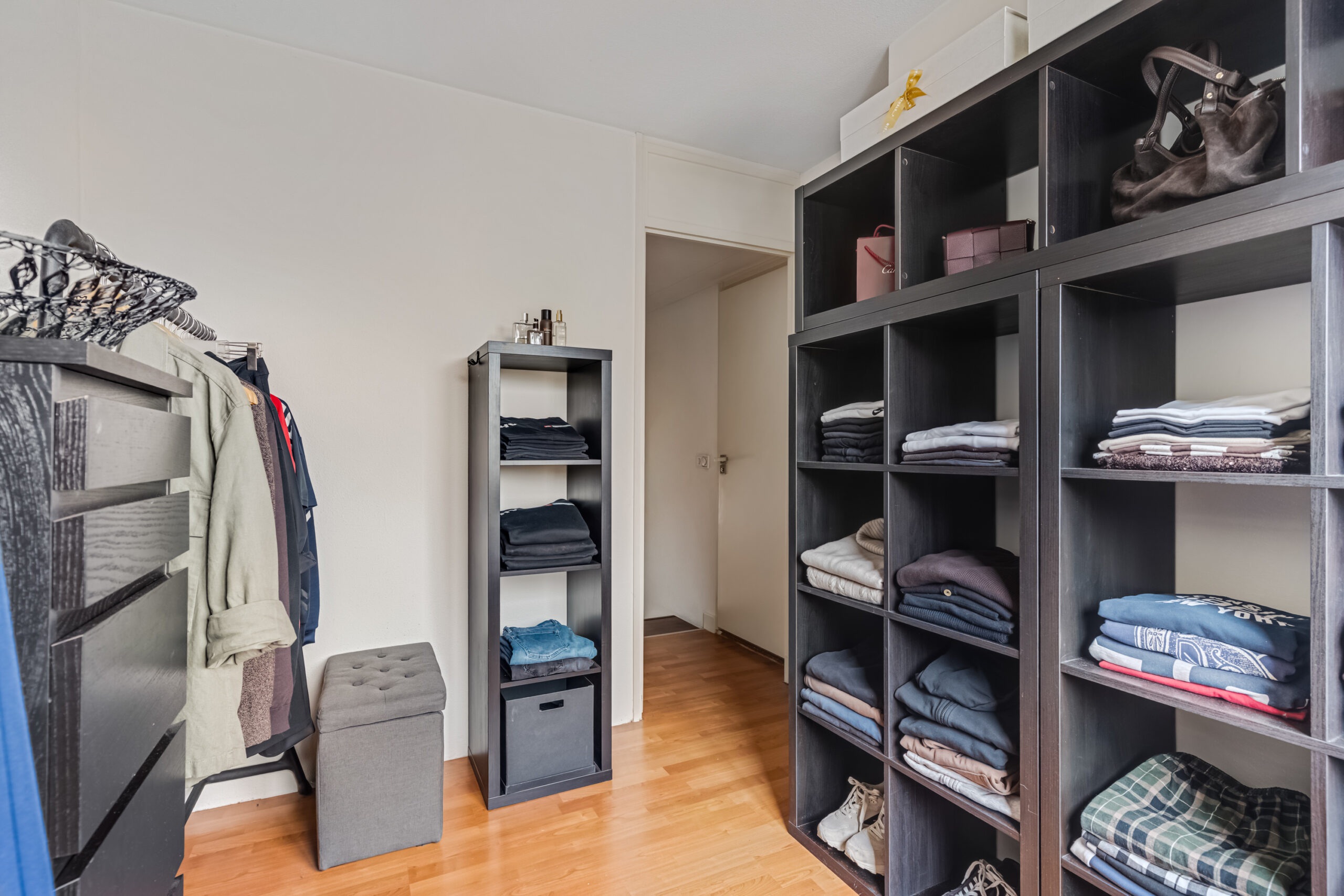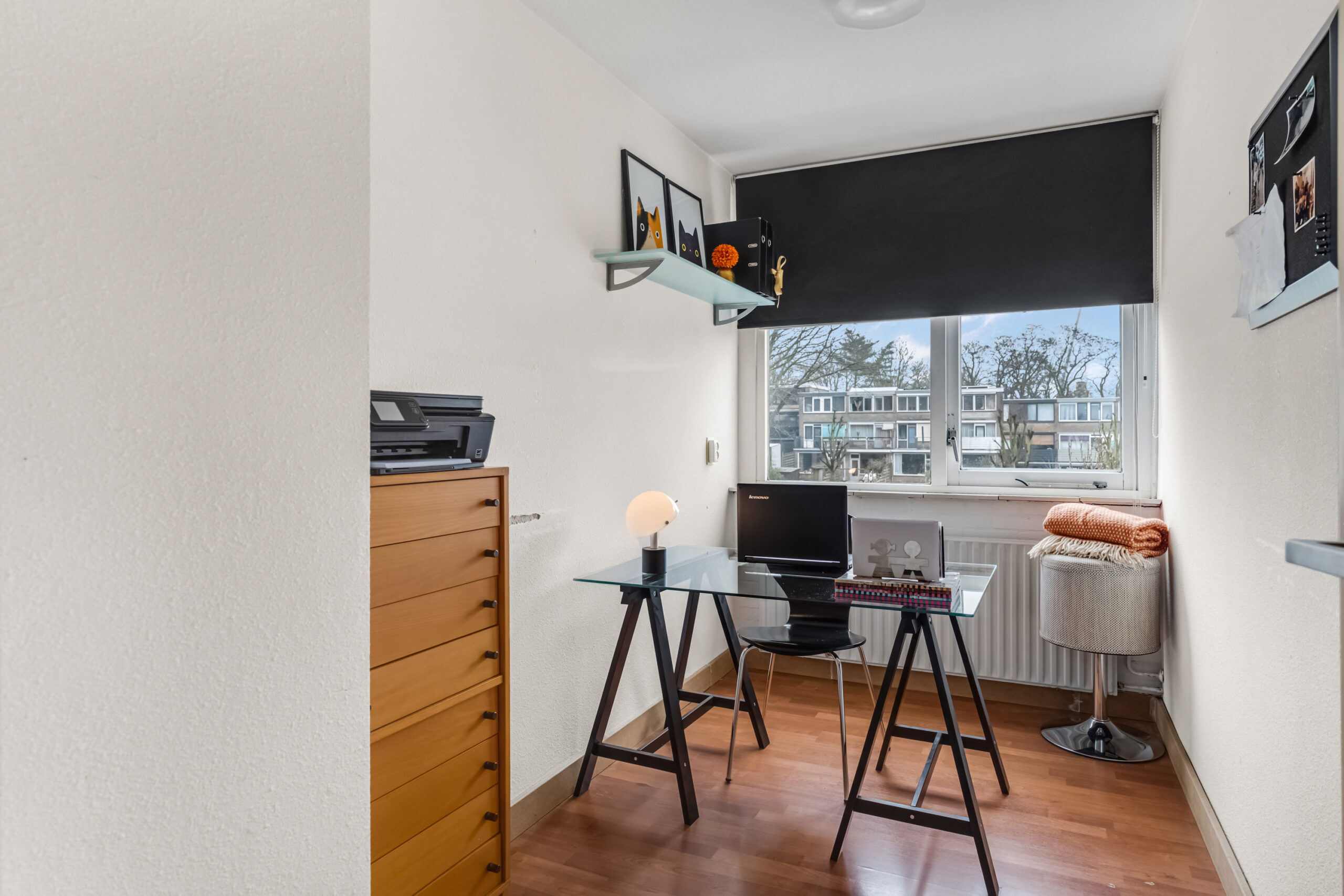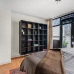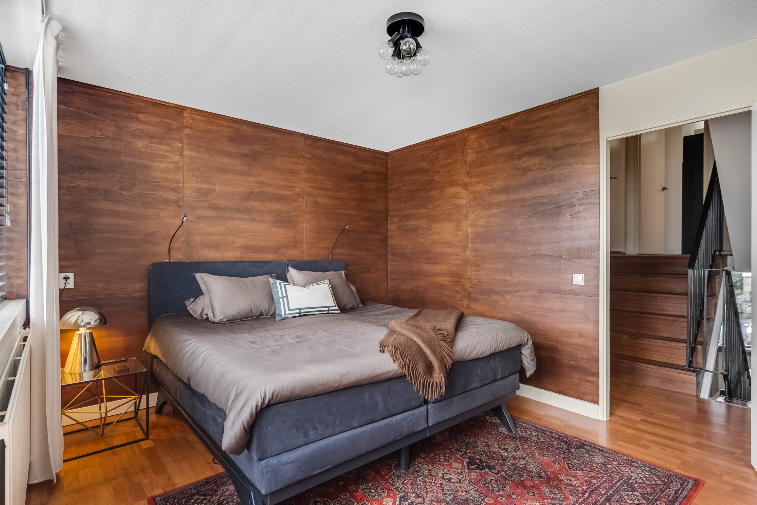 Vijfde niveau: Op de bovenste woonlaag is een derde ruime slaapkamer aanwezig. Vanuit deze kamer is er toegang tot een inpandige berg- en stookruimte met cv-opstelling. Aansluitend bevindt zich nog een vierde slaapkamer, die ook uitstekend geschikt is als werkkamer.