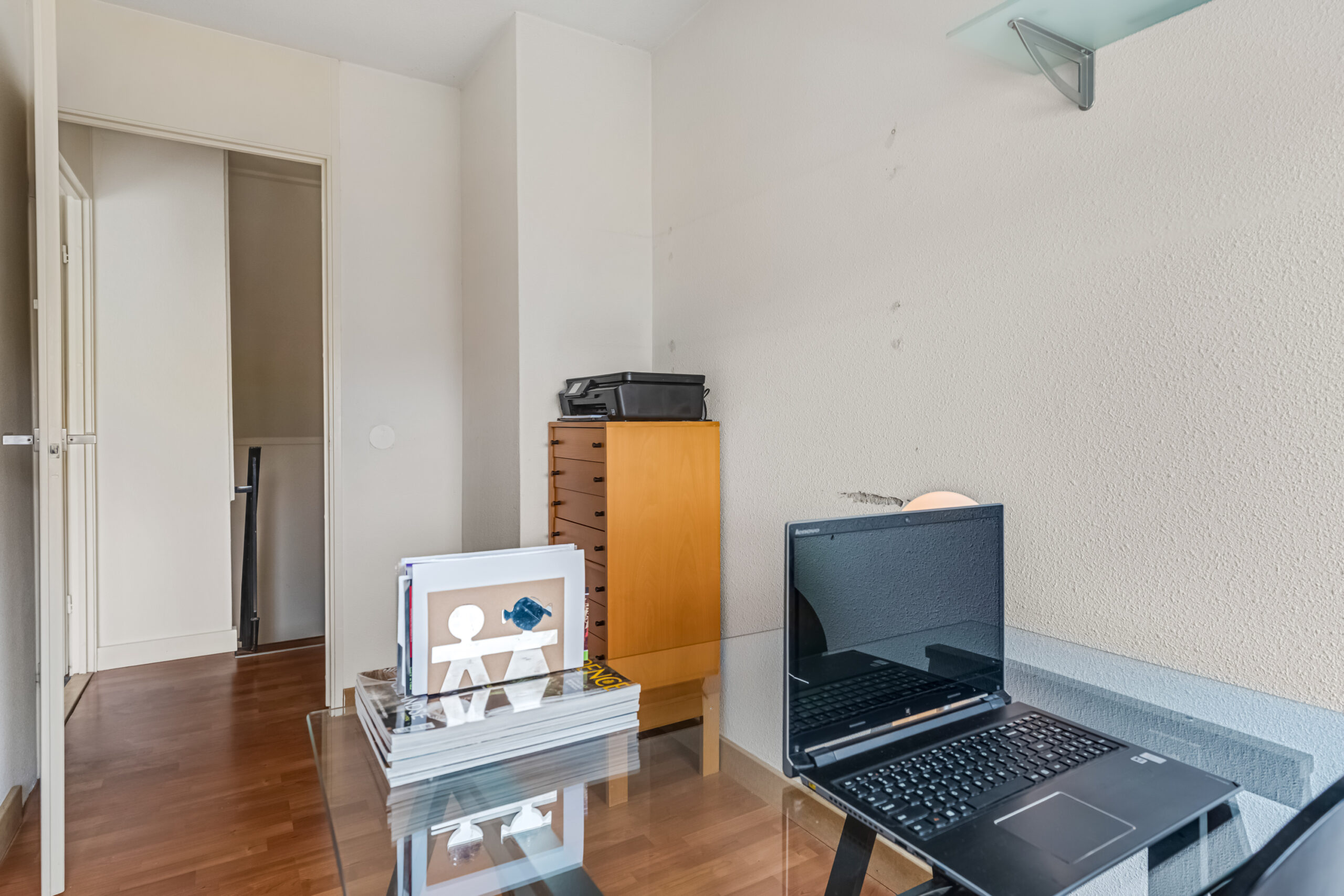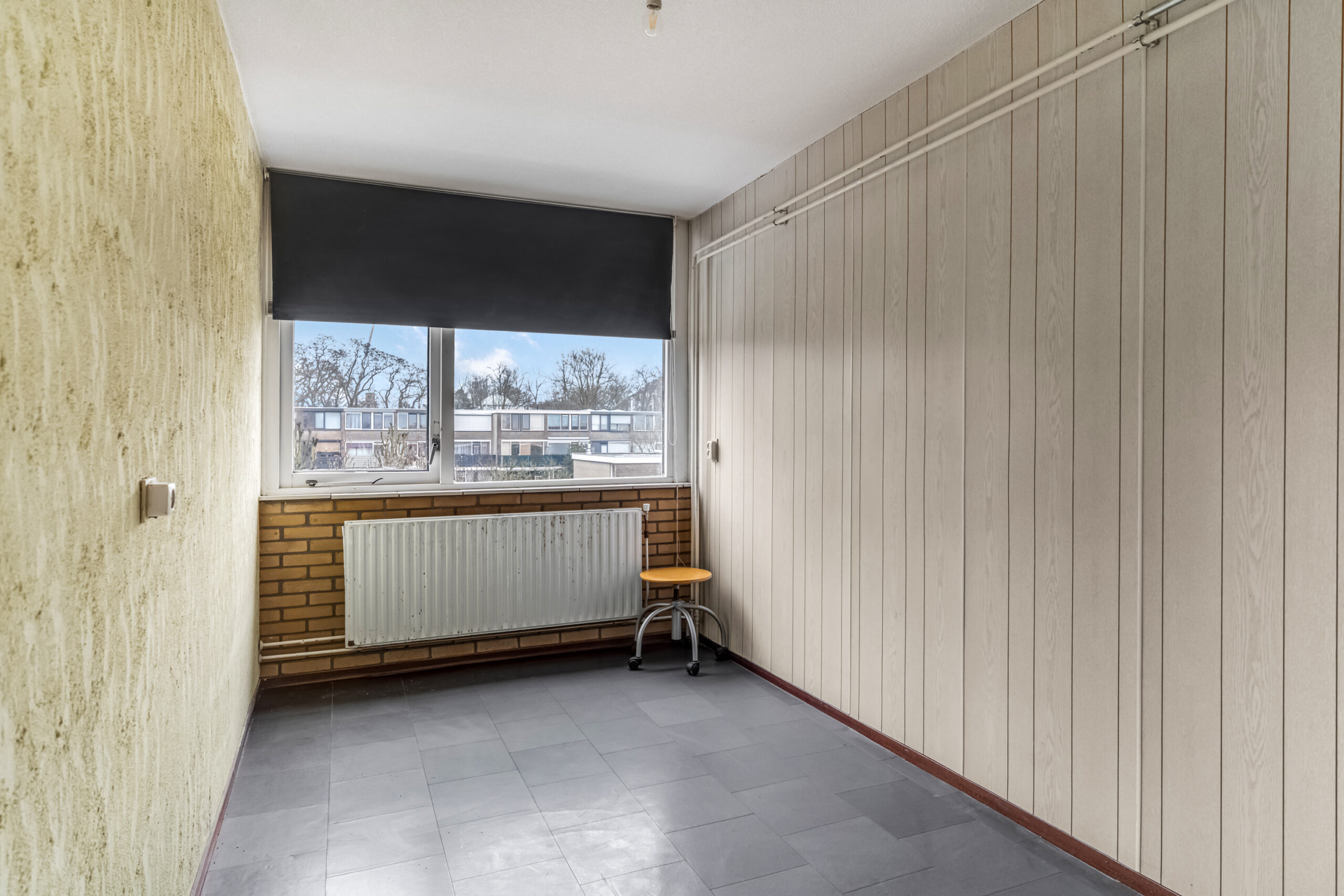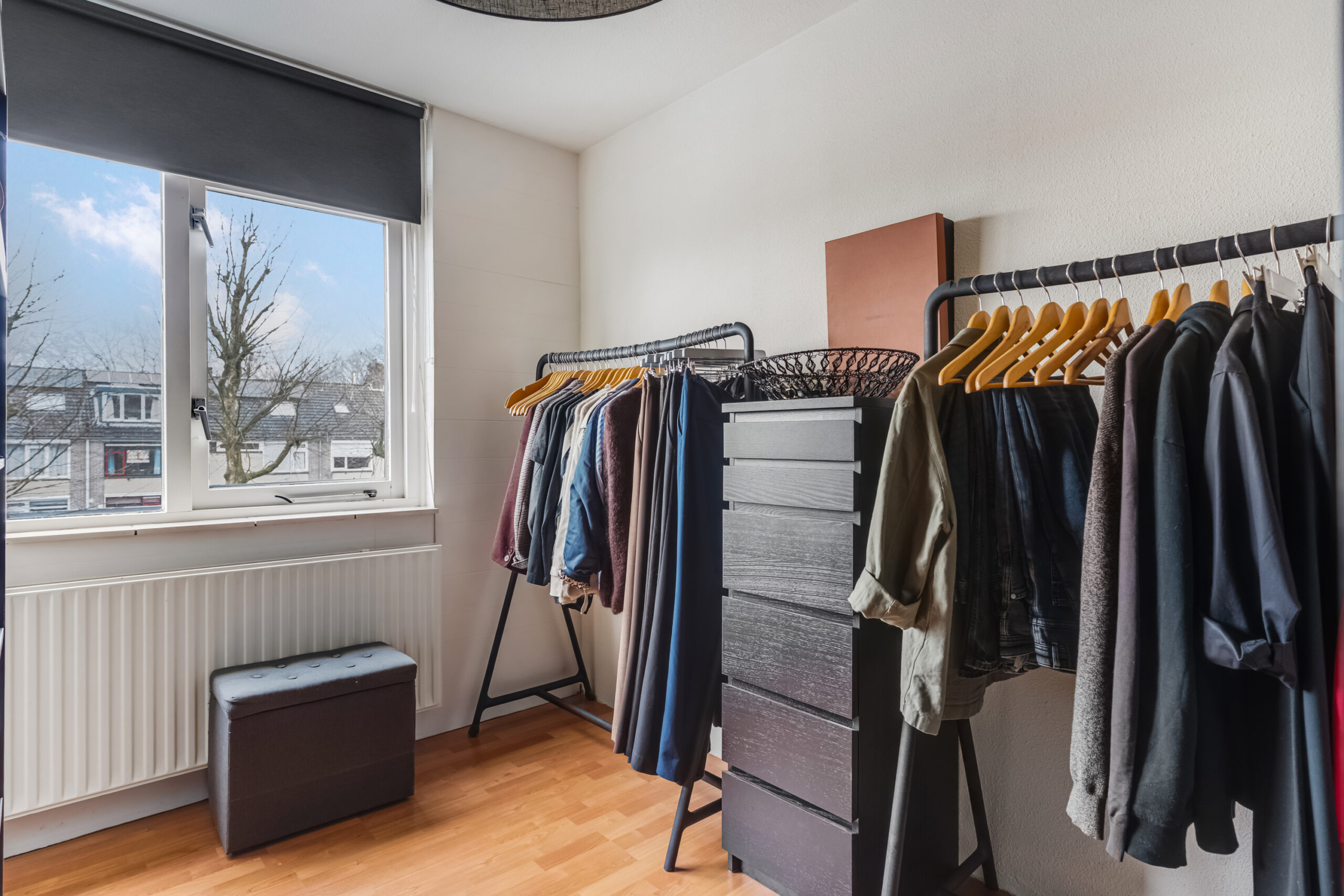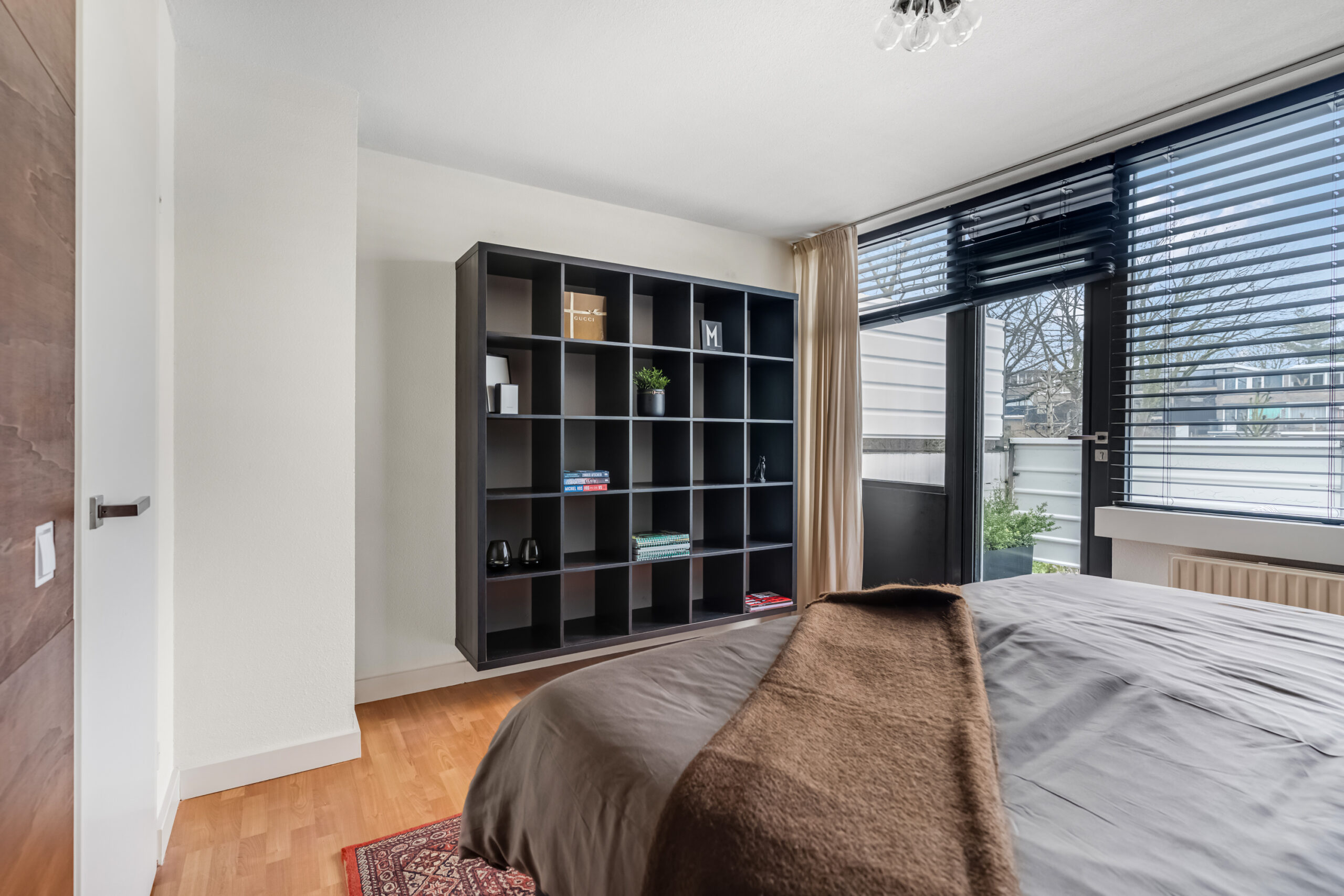 Vijfde niveau: Op de bovenste woonlaag is een derde ruime slaapkamer aanwezig. Vanuit deze kamer is er toegang tot een inpandige berg- en stookruimte met cv-opstelling. Aansluitend bevindt zich nog een vierde slaapkamer, die ook uitstekend geschikt is als werkkamer.