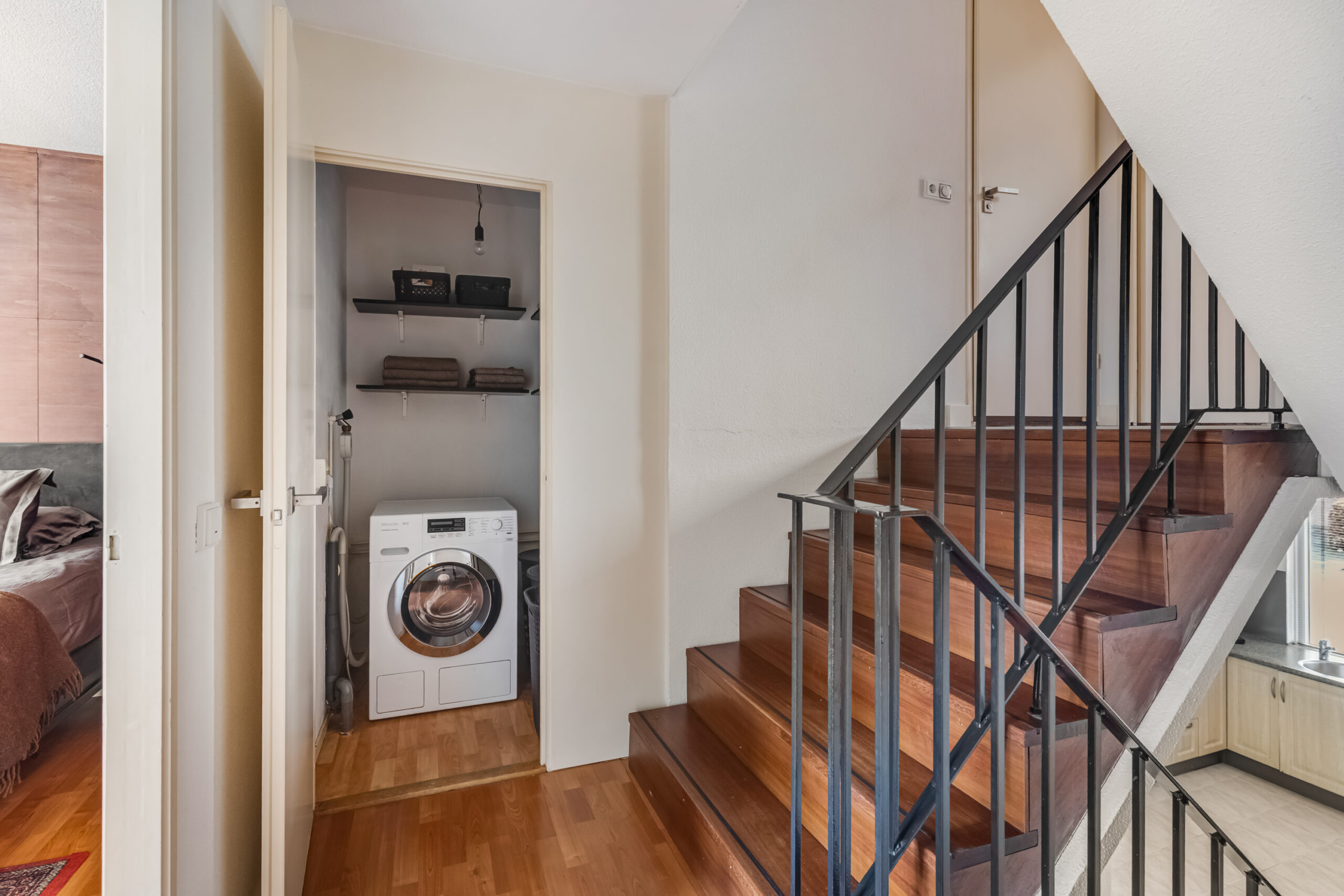 De splitlevel-indeling zorgt voor een open en speels karakter en optimale ruimte. Alle niveaus zijn met brede hardhouten trappen verbonden, waardoor de woning extra overzichtelijk en verrassend ruim aanvoelt!