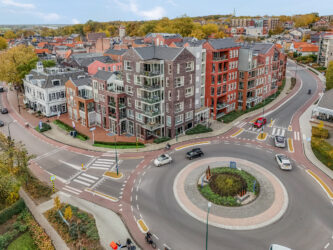 Centraal onder de gebouwen is er een parkeergarage met een afgesloten deel met privé parkeerplaatsen en fietsenstalling voor de bewoners en de privé bergingen gesitueerd.