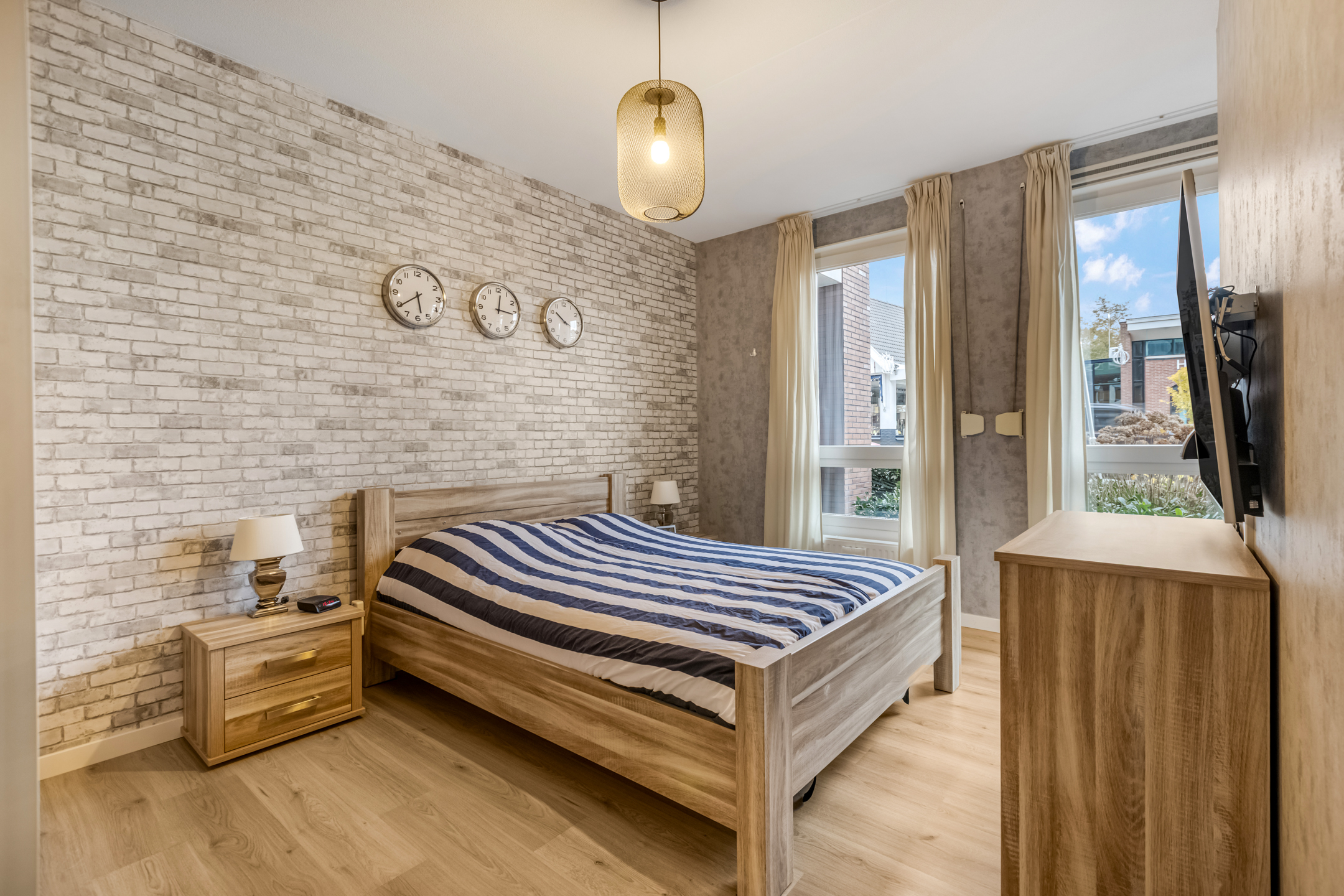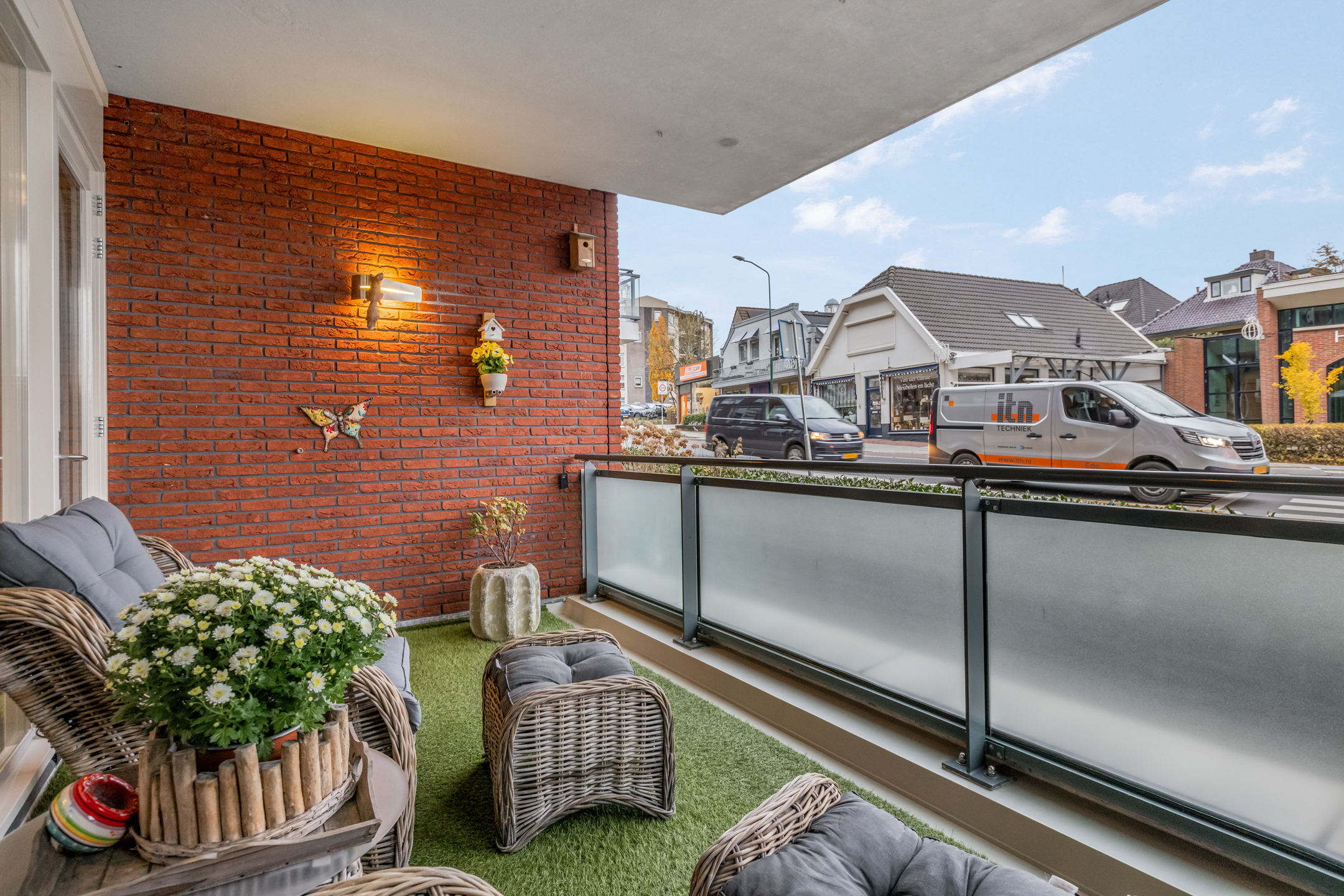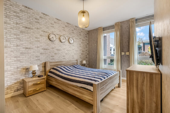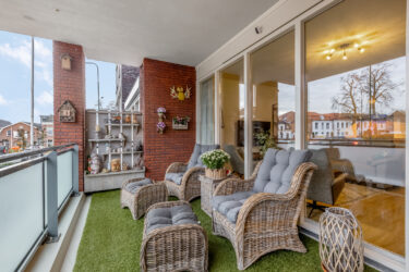Zodra je de deur opent, stap je een heerlijke verlenging van de woonkamer op: een overdekt balkon waarbinnen en buiten moeiteloos in elkaar overlopen. Dankzij de ligging aan de voorzijde geniet je hier van levendigheid in de straat, zonder in te leveren op privacy door de glazen balustrade. De ruimte is groot genoeg voor een gezellige lounge set. Het kunstgras geeft een groene, verzorgde uitstraling, en door de overkapping zit je altijd goed, ook bij een zomers buitje of in het voorjaarszonnetje. Een plek waar je ’s ochtends rustig opstart met koffie of ’s avonds met een glas wijn de dag afsluit.