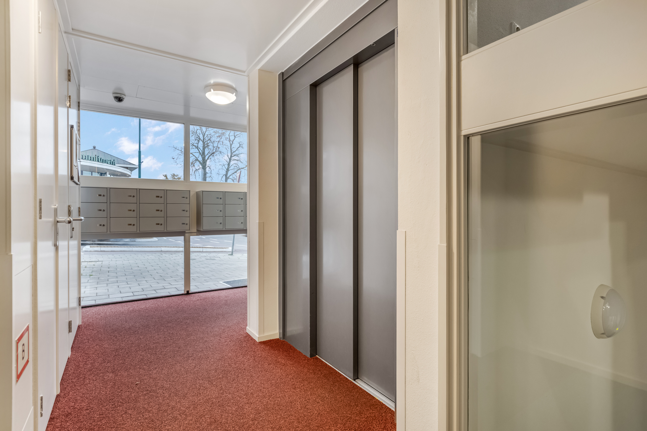 Aan de straatzijde bevindt zich het belpaneel met intercom en de brievenbussen. Via de verzorgde centrale hal is er toegang tot de liftinstallatie en het trappenhuis.