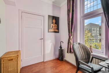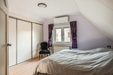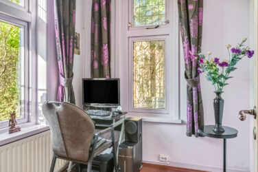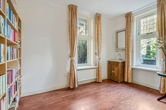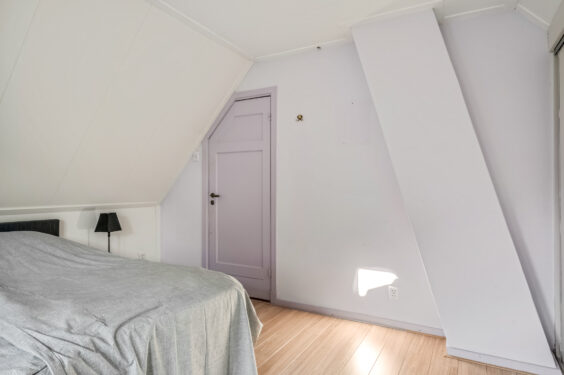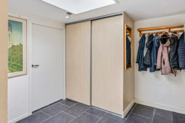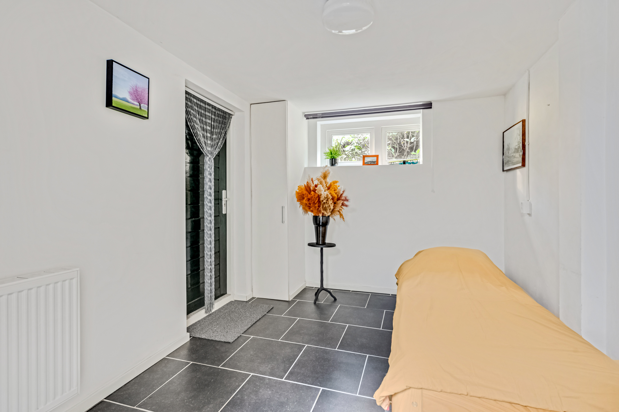Via de woonkamer bereik je de multifunctionele ruimte (voormalige garage). Nu in gebruik als slaapkamer, maar perfect voor wie een praktijk aan huis wil. Dankzij de kastenwand, garderoberuimte en eigen toegang via de tuin kun je dit volledig naar wens invullen, ideaal voor zorgverleners, coaches of zzp’ers die hun werkplek dicht bij huis willen.