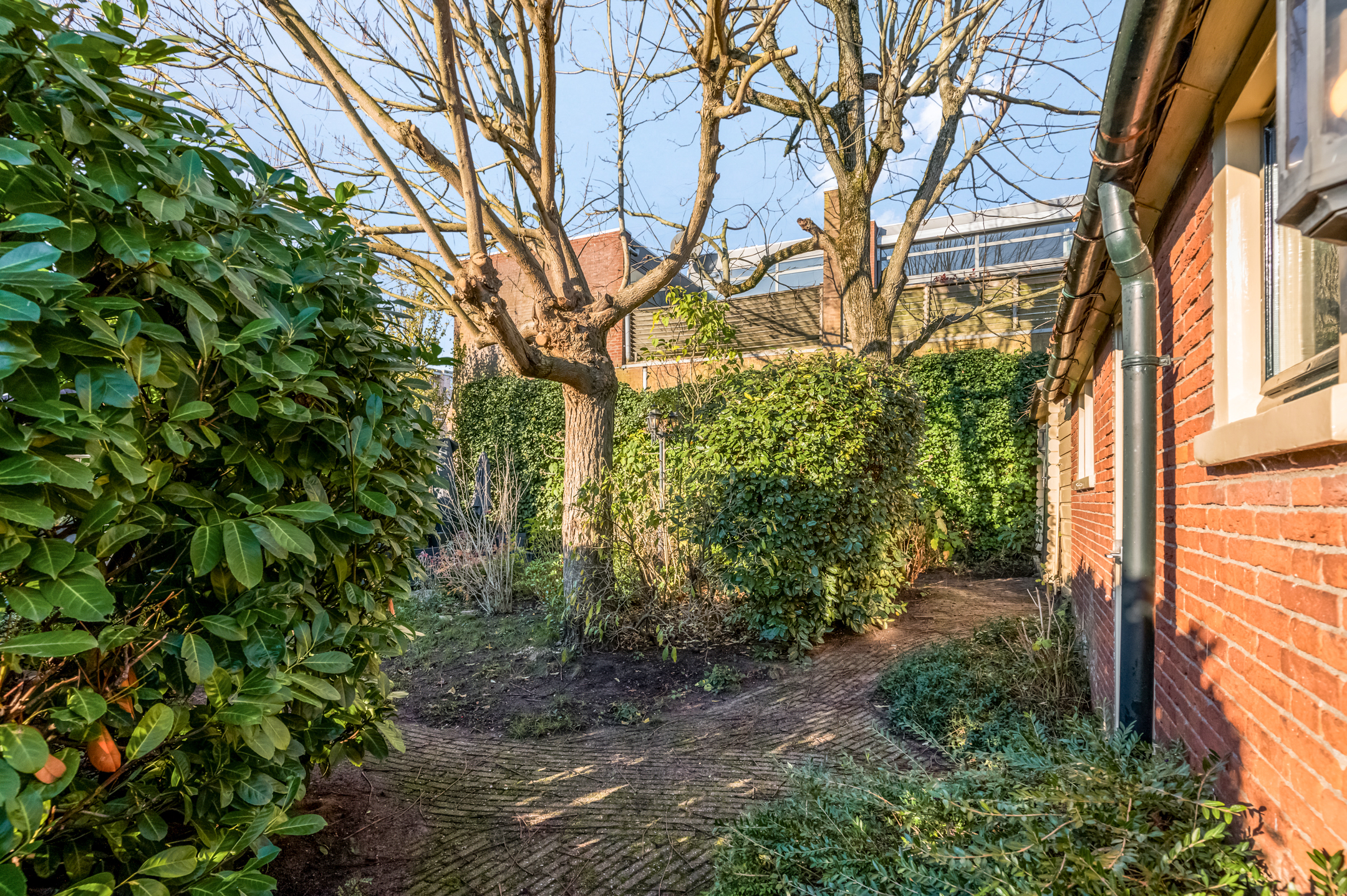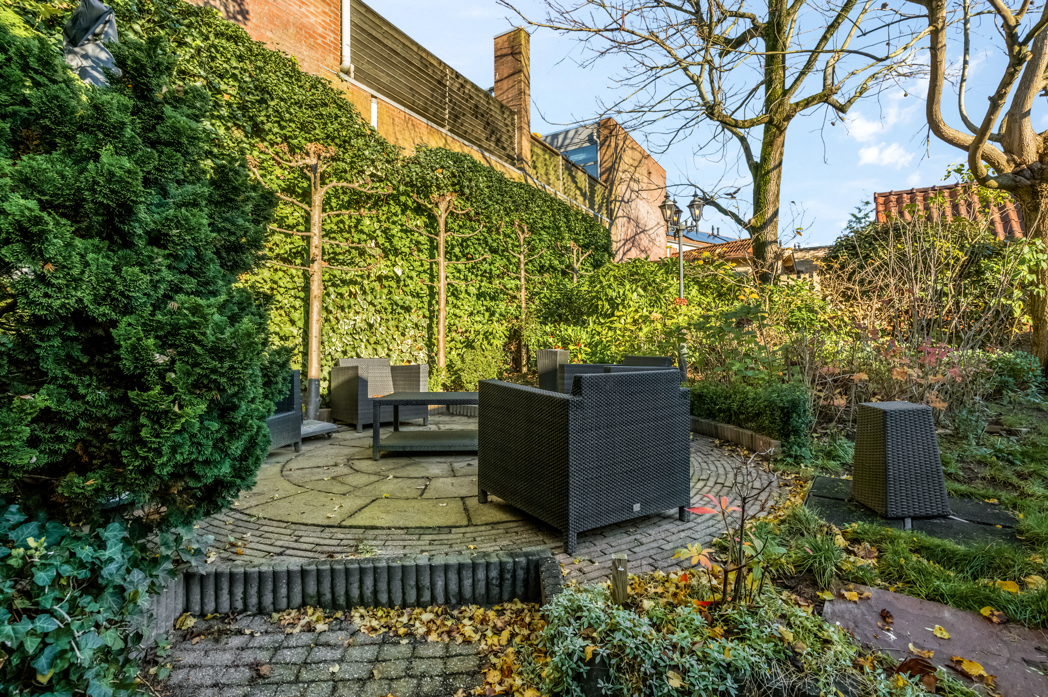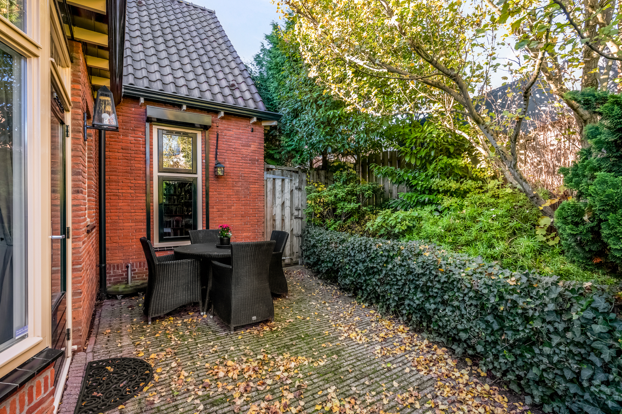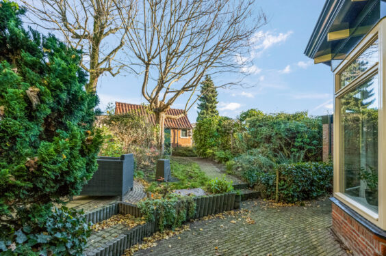 Buiten: De voor- en achtertuin zijn fraai aangelegd en bieden volop privacy, groen en verschillende terrassen. De borders met niveauverschillen maken het geheel speels en sfeervol. Achterin de tuin staat een vrijstaande houten én stenen berging, plus een handige achterom voor de fiets of brommer.