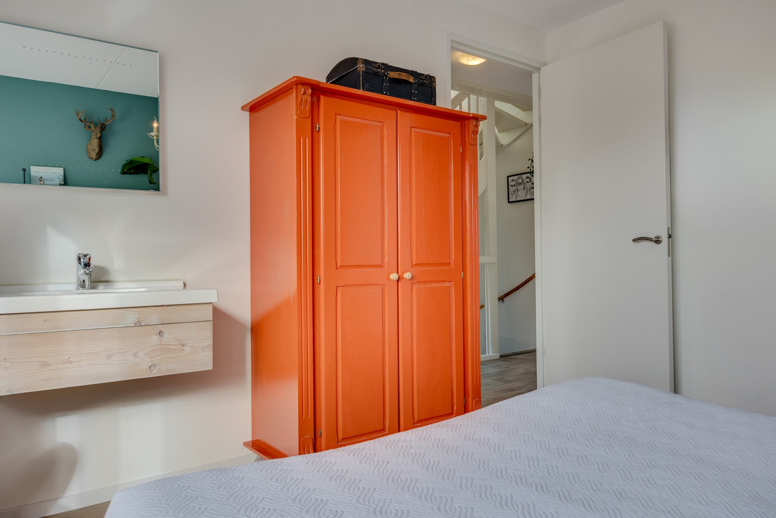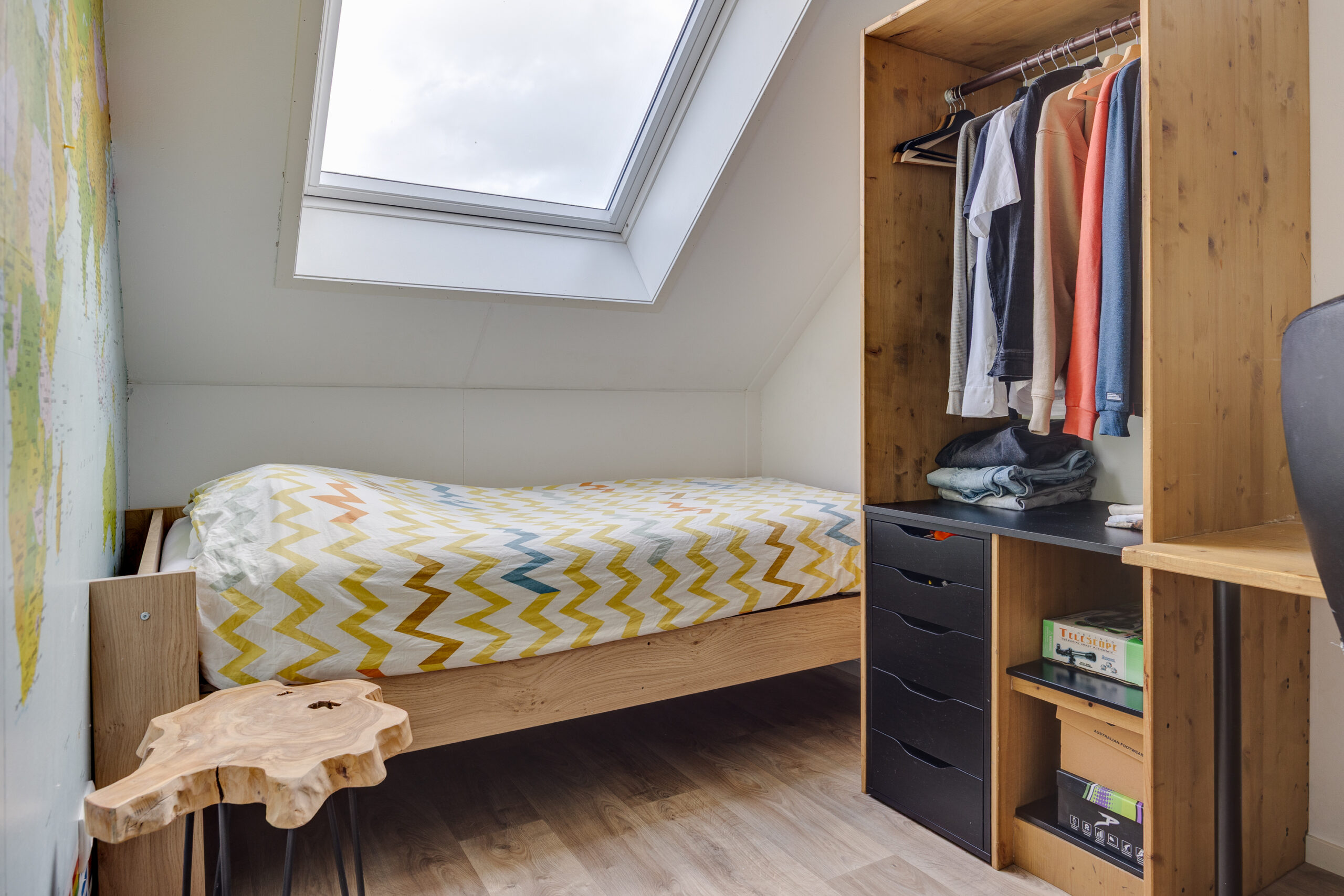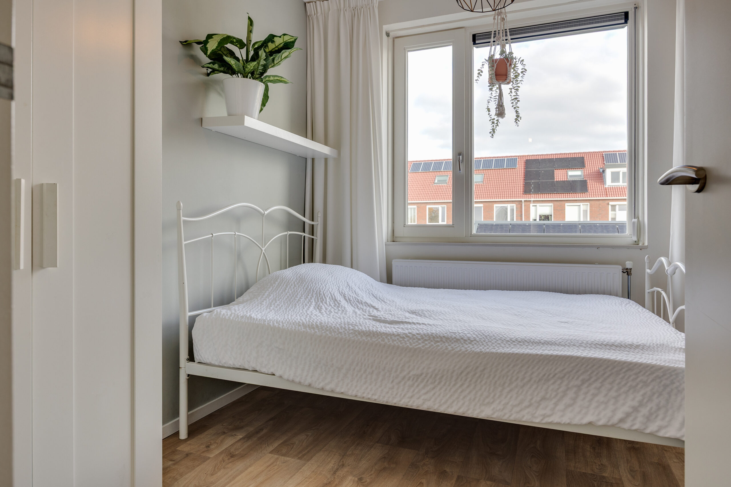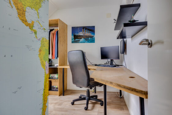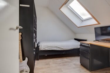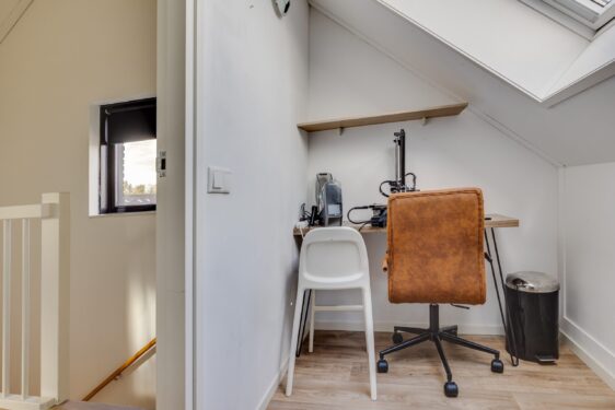 De tweede verdieping biedt verrassend veel ruimte met twee slaapkamers en een kleinere, multifunctionele kamer: ideaal als werkplek of hobbyruimte. Elk vertrek heeft een dakraam voor prettig daglicht. Daarnaast is er een wasruimte/ berging aanwezig met de opstelling van de Intergas CV-ketel (2018), de omvormer voor de zonnepanelen, een wastafelmeubel en zelfs een urinoir.