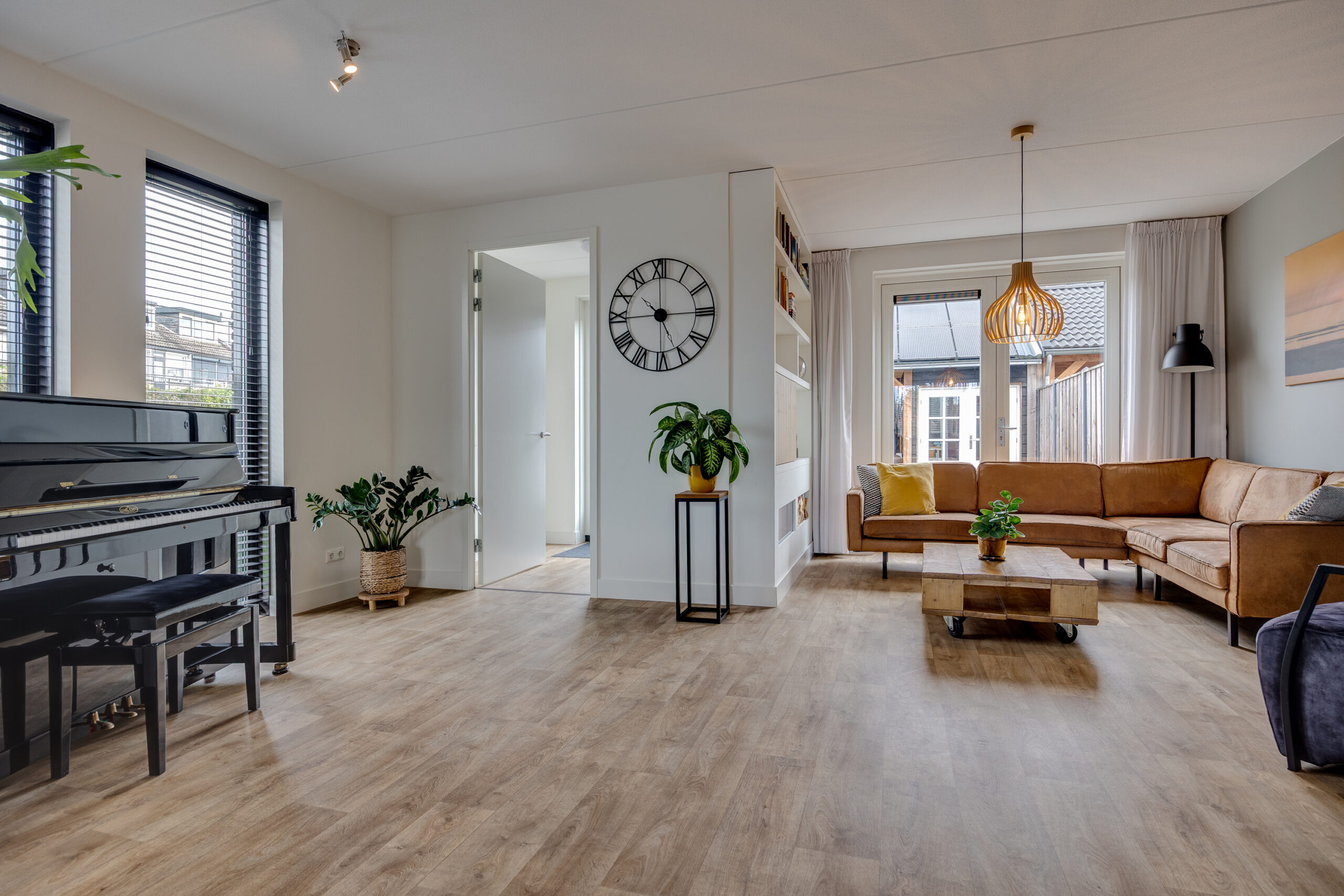 Omdat de entree in de zijgevel is gelegen zijn alle ruimtes in de woning over de volle breedte benut.