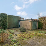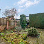 Buiten: De voortuin heeft mooie sierbeplanting en parkeervoorzieningen op eigen terrein. De achtertuin heeft meerdere terrassen, open haardopslag, borders, pergola en geeft toegang tot de vrijstaande stenen garage die voorzien is van elektra.