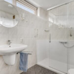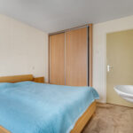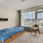1e verdieping: overloop met vaste kast en trapopgang naar de 2e verdieping, 3 slaapkamers waarvan 2 slaapkamers zijn gelegen aan de voorzijde en voorzien zijn van een wastafel en 1 slaapkamer van een schuifkastenwand. De 3e slaapkamer ligt aan de achterzijde en heeft 2 vaste kasten en een deur naar het ruime balkon. De badkamer is geheel betegeld en voorzien van een ruime inloopdouche met thermostaatkraan, wastafel met spiegel, hangende kast, toilet en designradiator.