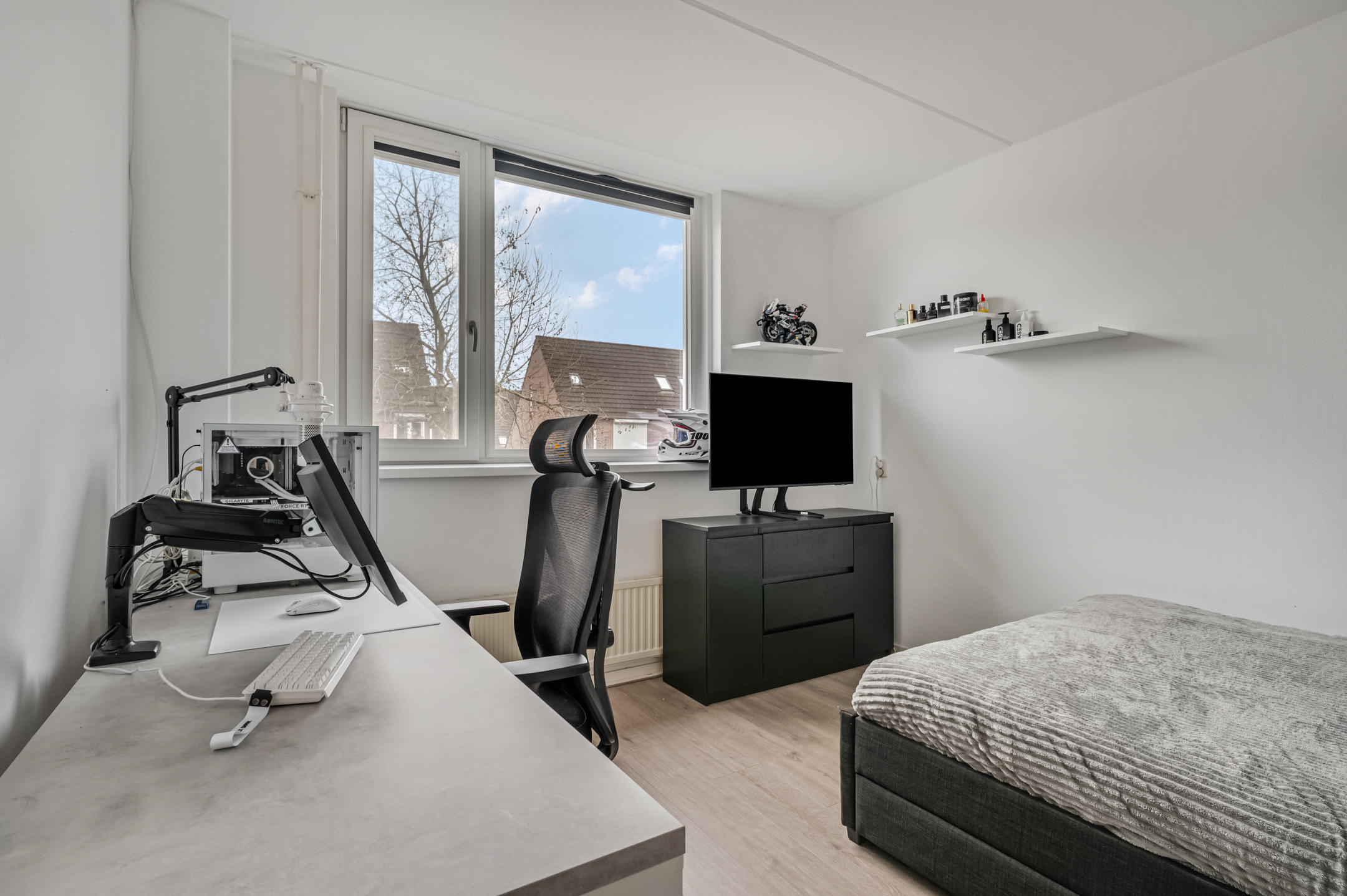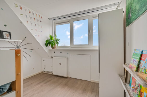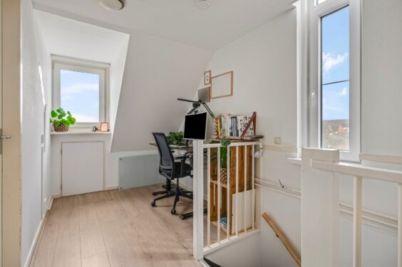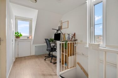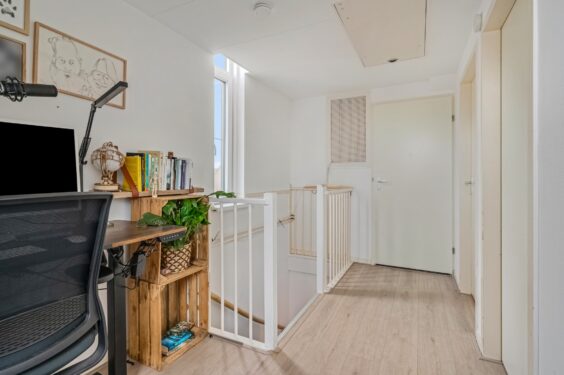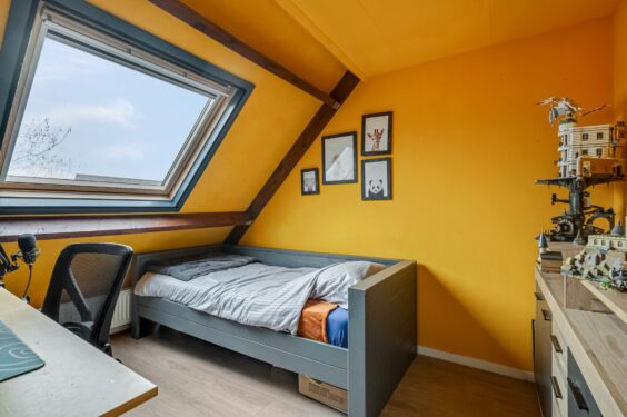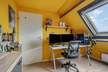 2e verdieping: Een verrassend ruime verdieping met veel licht dankzij de aanwezige dakkapel, dakraam én extra zijraam, een fijne bonus van de hoekligging. Op de overloop is momenteel een werkplek ingericht, maar de ruimte leent zich vanzelfsprekend ook voor andere functies. Ook op deze verdieping bevinden zich twee fijne slaapkamers, waarvan de slaapkamer aan de achterzijde is voorzien van een dakkapel. Deze kamer is tevens ook voorzien van knieschotten die zorgen voor extra bergruimte.