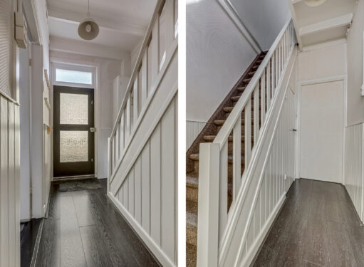 De woning beschikt over authentieke elementen zoals originele schouwen en paneeldeuren, en biedt volop potentie om naar eigen wens te moderniseren. Op het royale perceel van maar liefst 510 m² bevinden zich een grote garage/loods, een carport en een volledig bestraat buitenterrein met meerdere parkeerplaatsen.