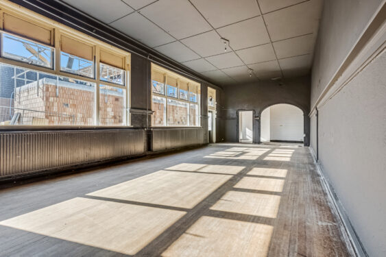 De grote raampartijen en hoge plafonds bieden veel licht en vrijheid om de ruimten naar wens in te delen.