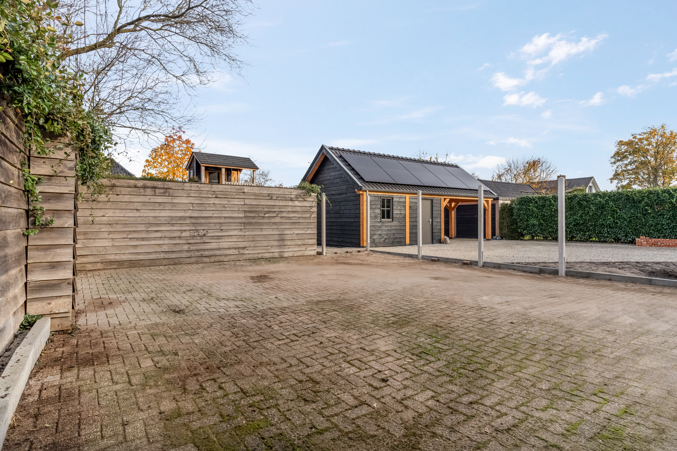 De achtertuin is onderhoudsvriendelijk en is bereikbaar via de oprit langs de woning.