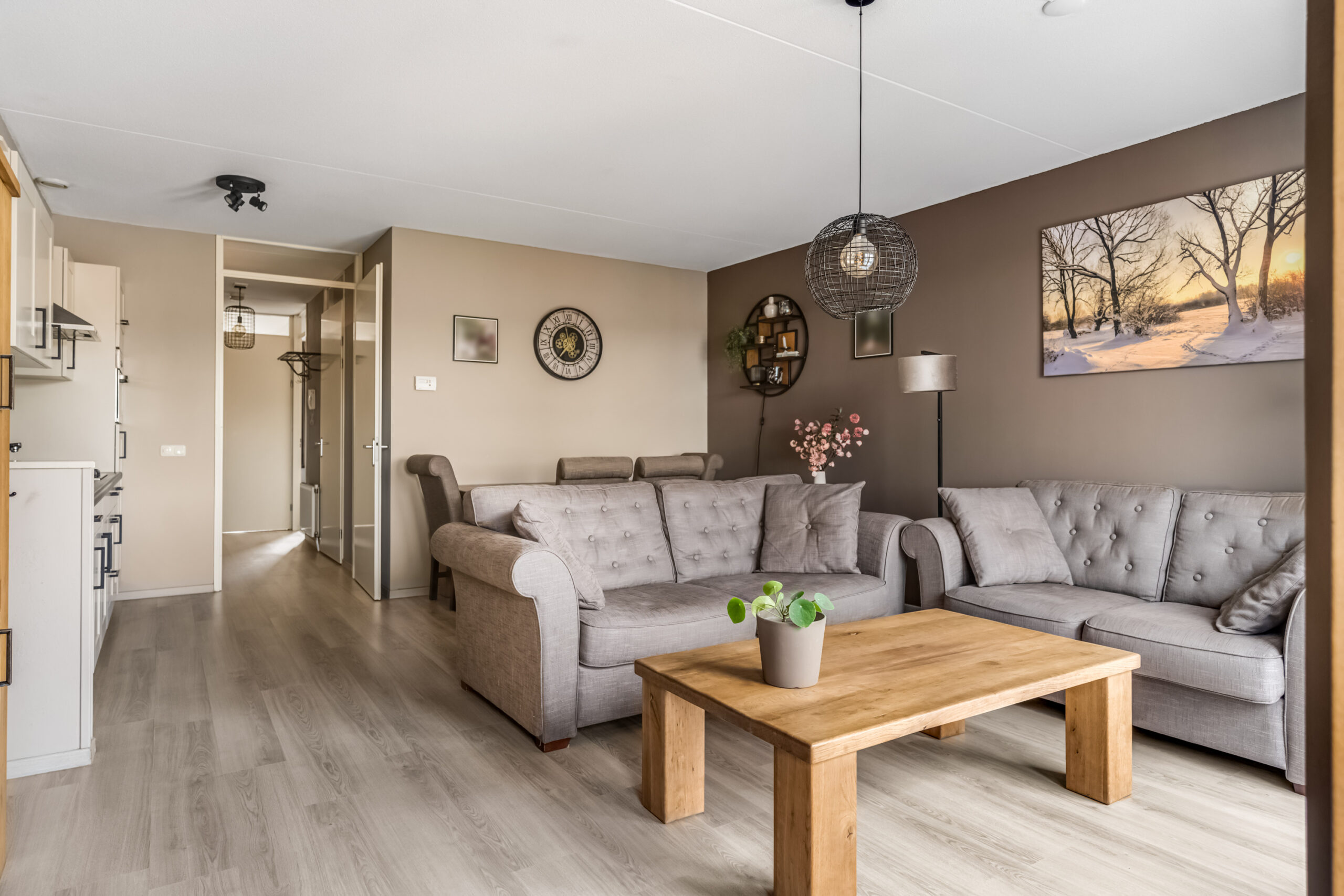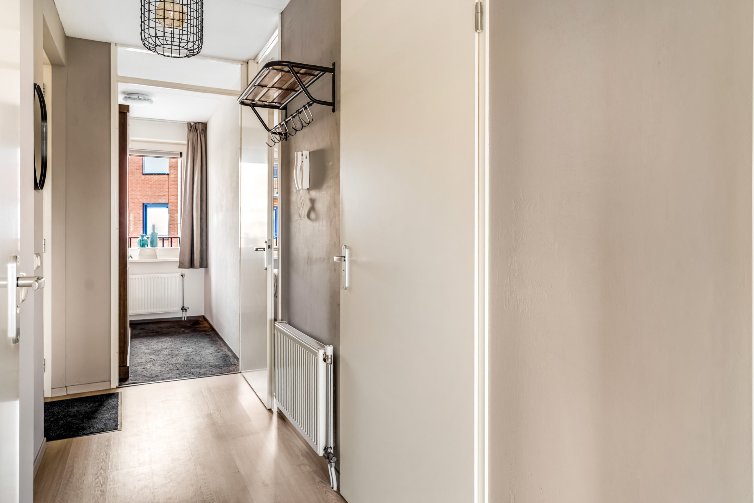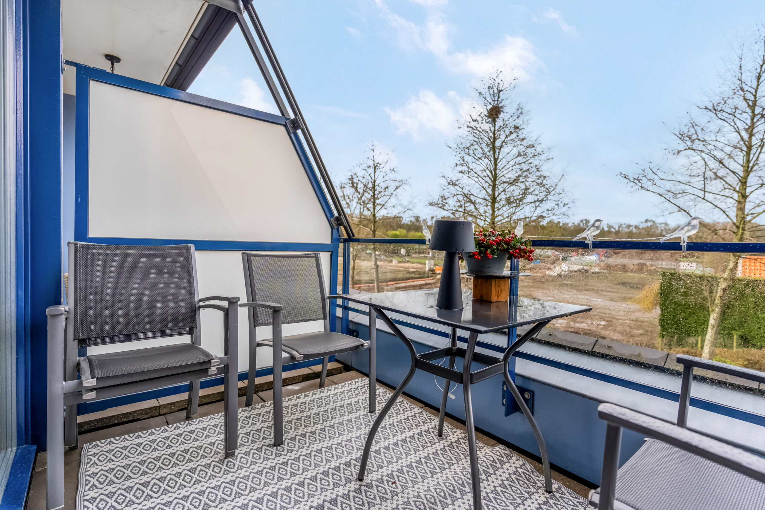 Je komt binnen in de centrale hal die toegang geeft tot alle vertrekken. De woonkamer met open keuken is een fijne leefruimte. Vanuit de woonkamer heb je direct toegang tot het balkon op het westen, voorzien van een elektrische zonwering. Daarnaast is er een dakvenster aanwezig die zorgt voor extra lichtinval.