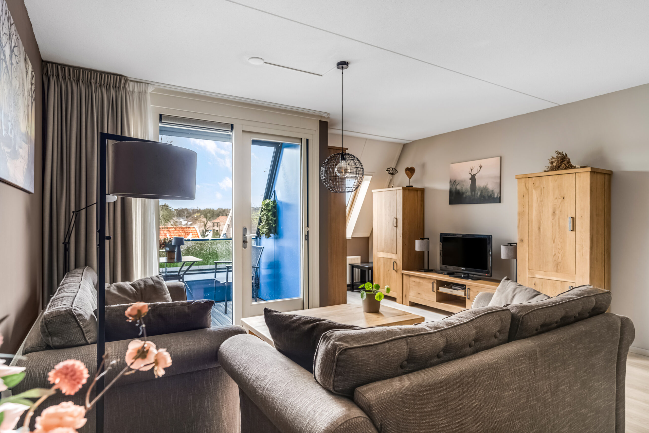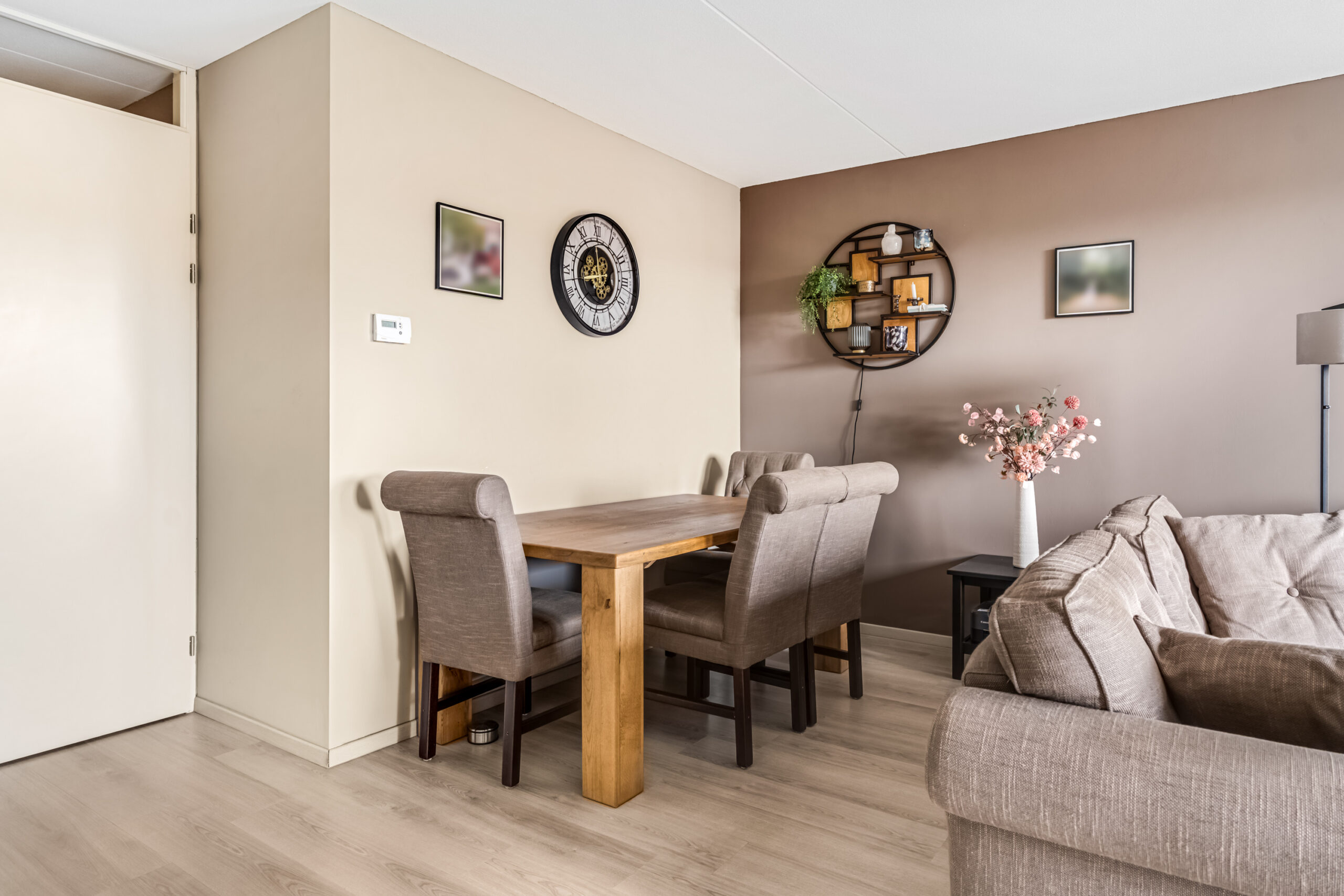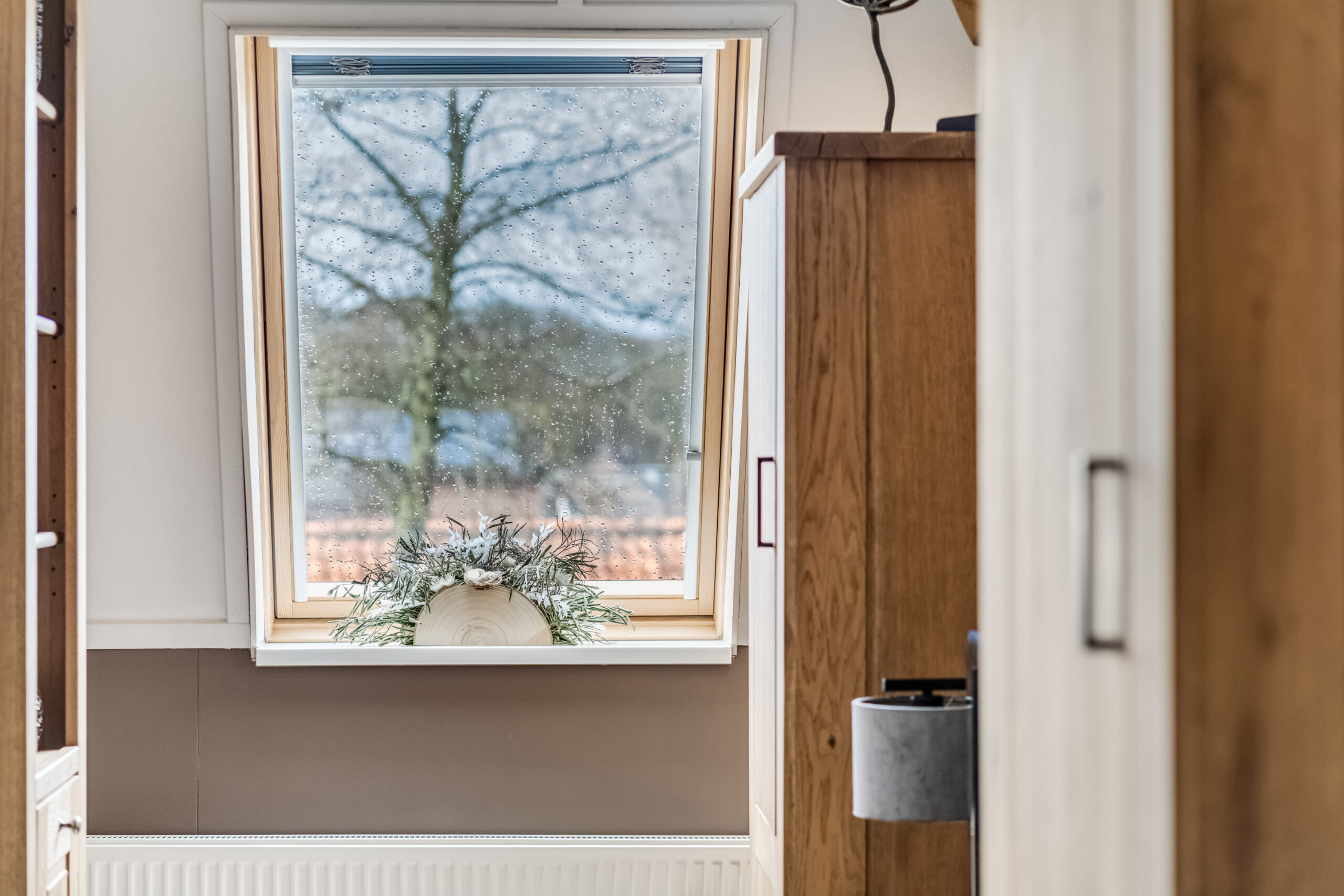 Je komt binnen in de centrale hal die toegang geeft tot alle vertrekken. De woonkamer met open keuken is een fijne leefruimte. Vanuit de woonkamer heb je direct toegang tot het balkon op het westen, voorzien van een elektrische zonwering. Daarnaast is er een dakvenster aanwezig die zorgt voor extra lichtinval.
