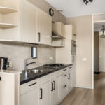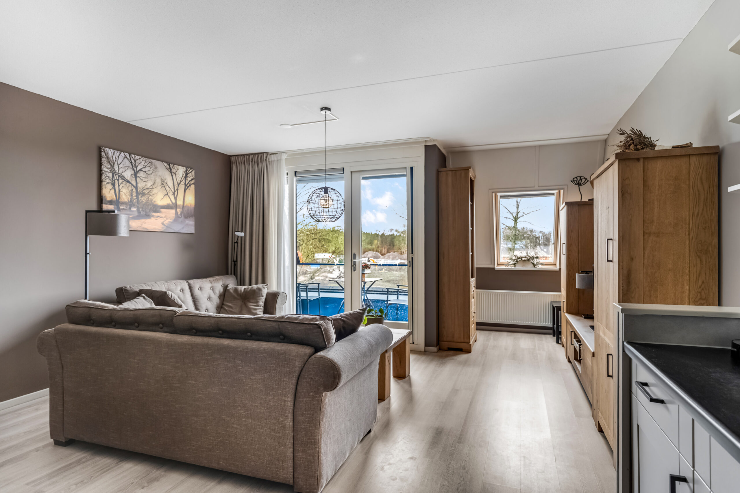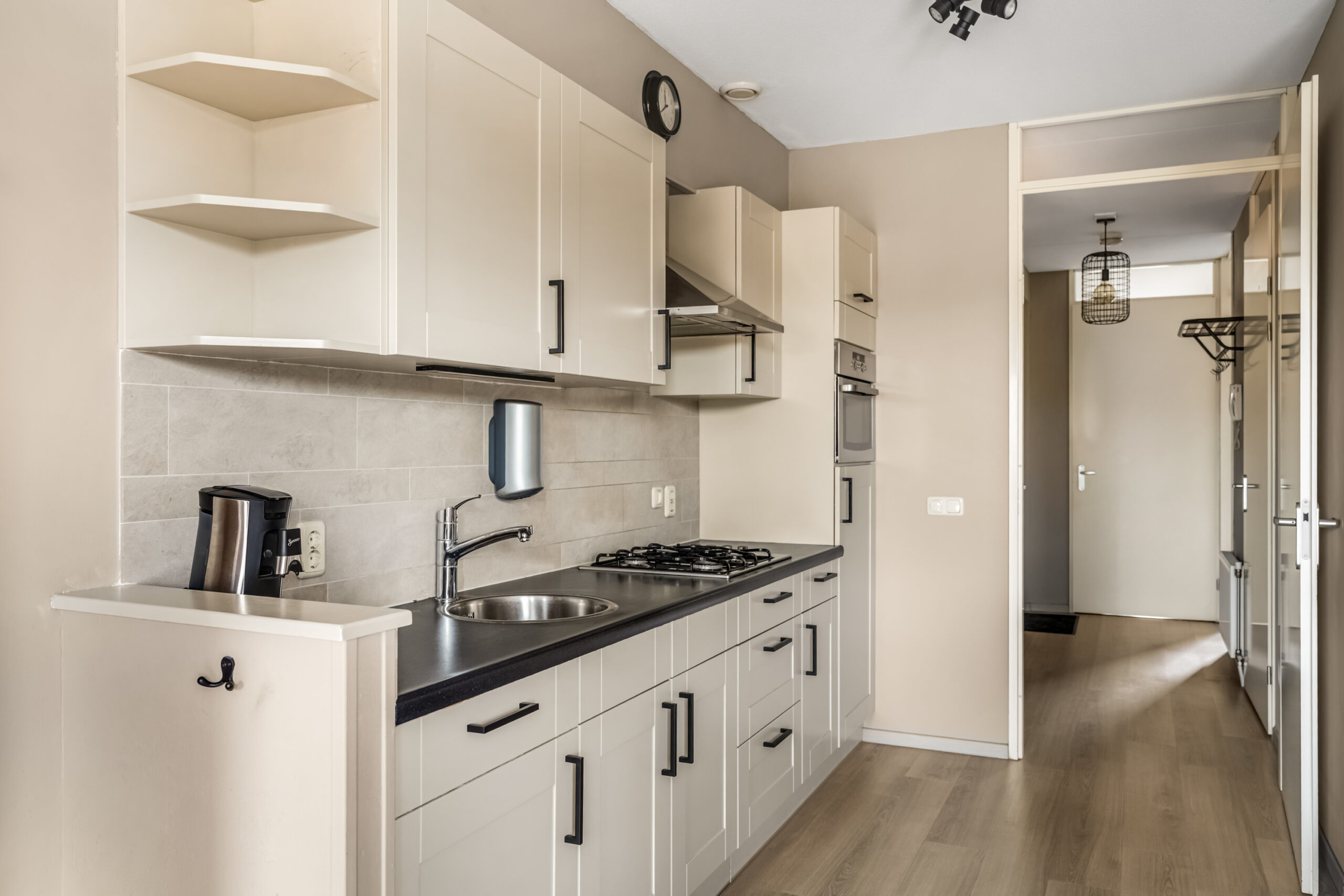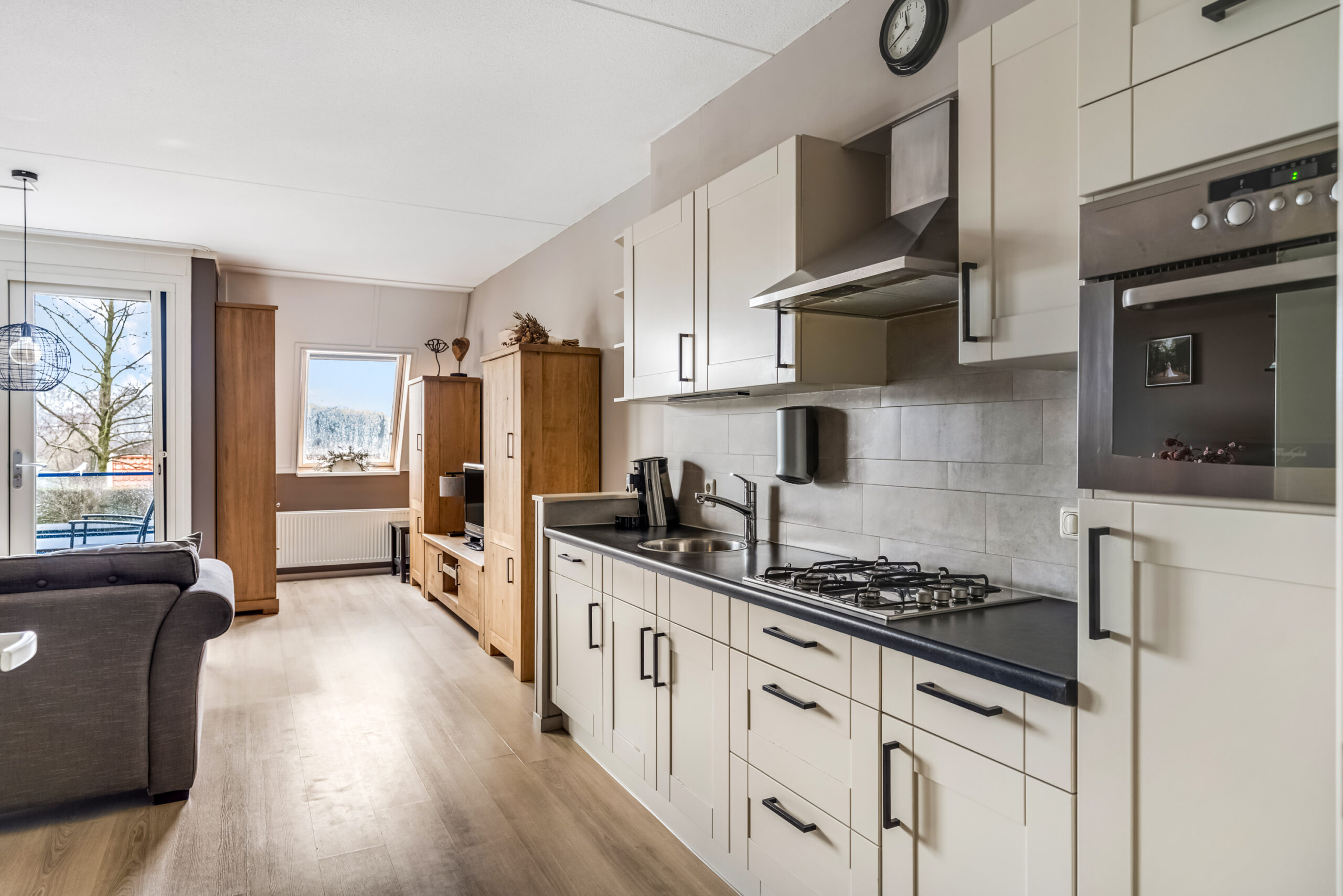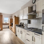 De open keuken is uitgevoerd met een wandopstelling en voorzien van een 4-pits gaskooktoestel, afzuigkap, spoelbak, combi-oven en koelkast. Aan de galerijzijde bevinden zich twee kamers: een ruime slaapkamer en een tweede, kleinere kamer die uitstekend geschikt is als werk-, logeer- of hobbyruimte.