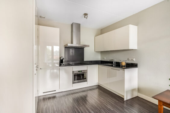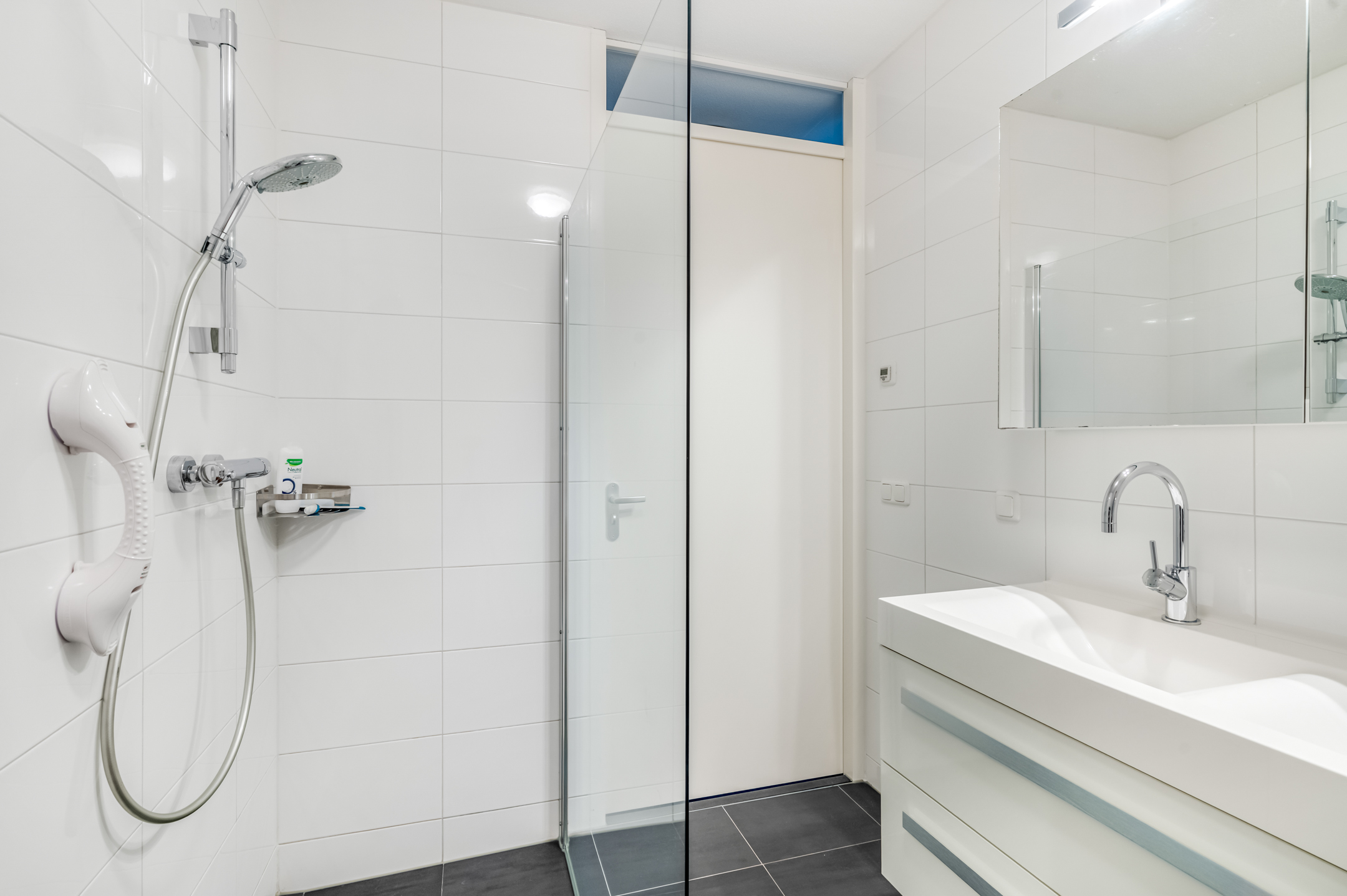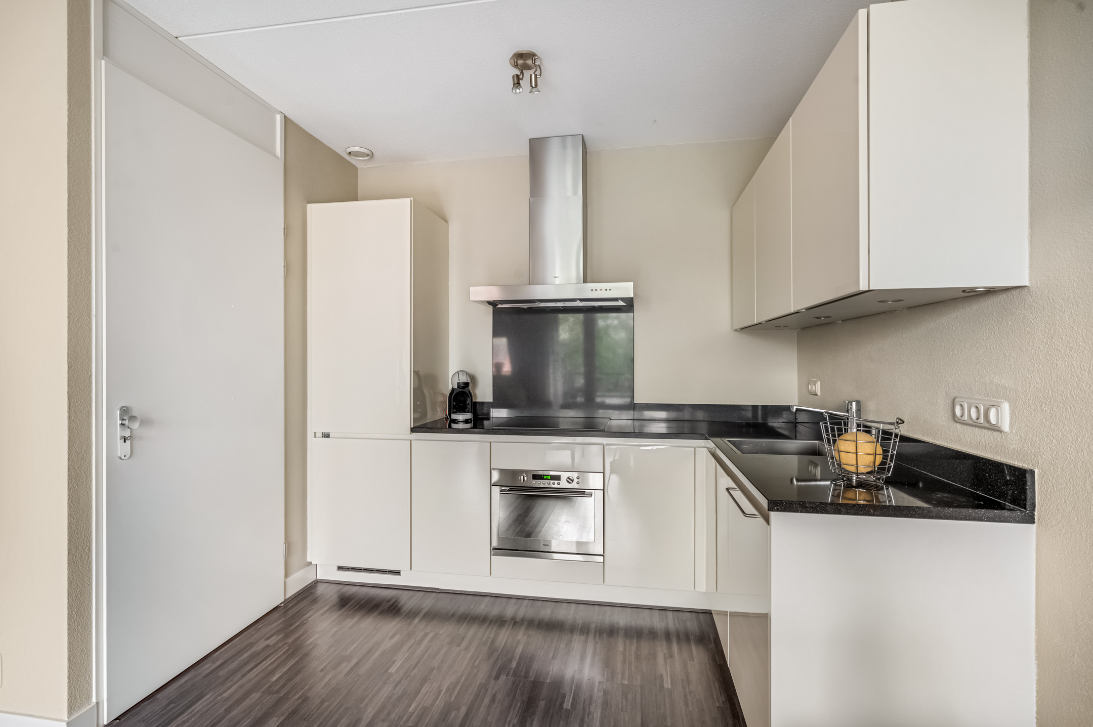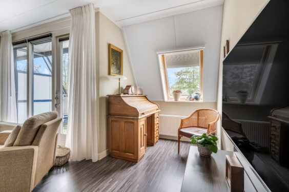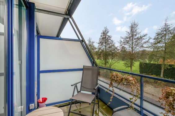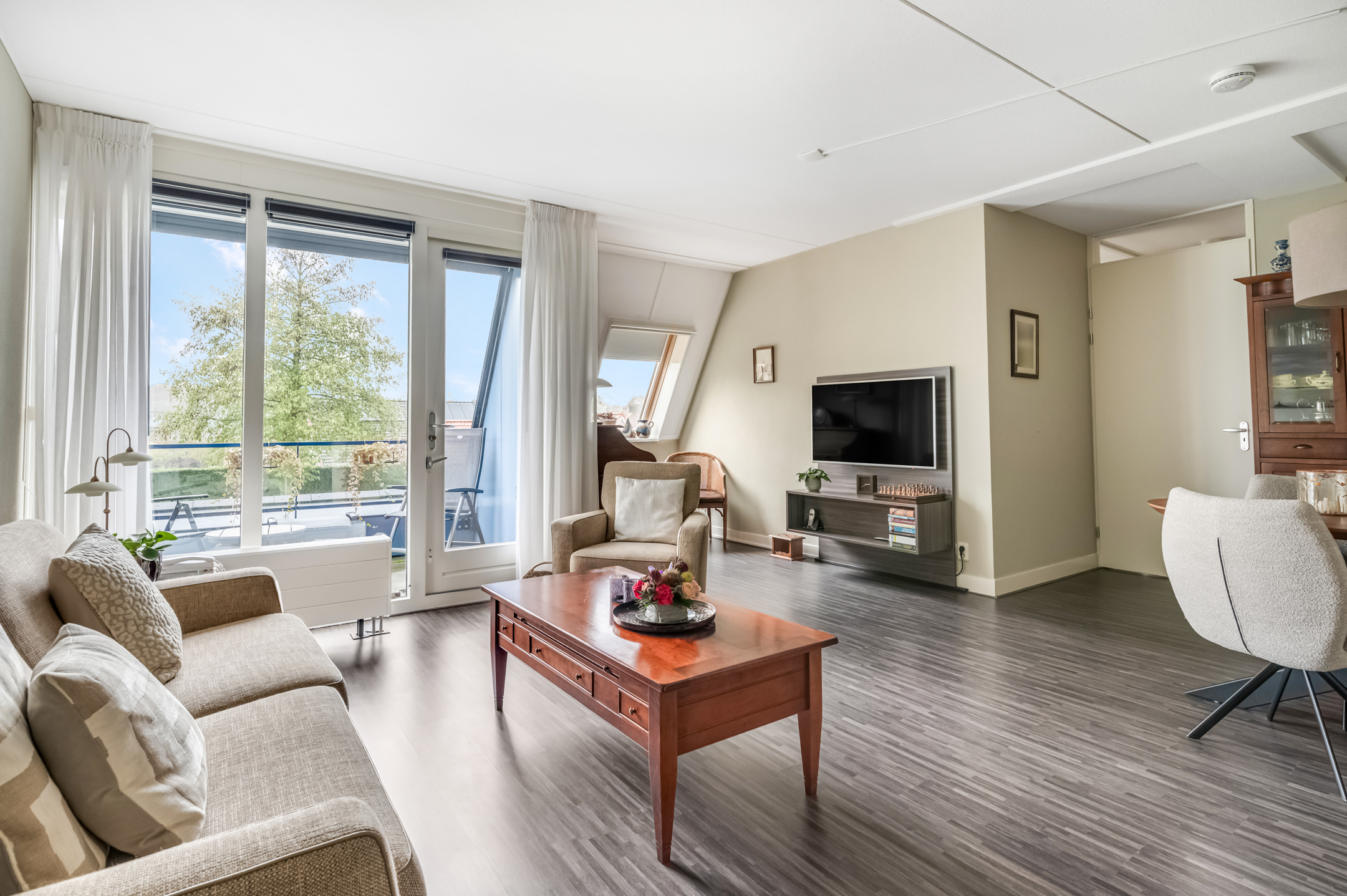 De lichte woonkamer heeft een schuifpui naar het balkon (voorzien van elektrisch bedienbaar screen en zicht over de omgeving) en is voldoende ruim voor het plaatsen van een fijne zitruimte en eettafel. De open keuken beschikt over een hoogglans hoekopstelling voorzien van composiet werkblad, bovenkasten en inbouwapparatuur zoals een 4-pits inductieplaat, RVS-afzuigkap, koelkast, vriezer, vaatwasser en oven. Aangrenzend aan de keuken bevindt zich een praktische berging met aansluitingen voor wassen- en drogen en CV-opstelling. Het appartement heeft 2 slaapkamers beiden voorzien van een dakvenster met verduistering en horren. De 2e slaapkamer is thans in gebruik als kleedruimte, maar ook ideaal als logeer- of studeerkamer. De geheel betegelde badkamer is uitgevoerd met een badkamermeubel met dubbele wastafel en spiegel, ligbad, inloopdouche (beiden met thermostaatkraan) en een designradiator.
