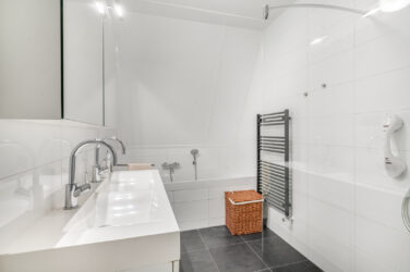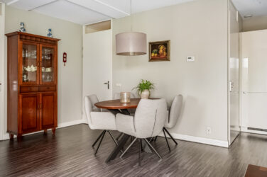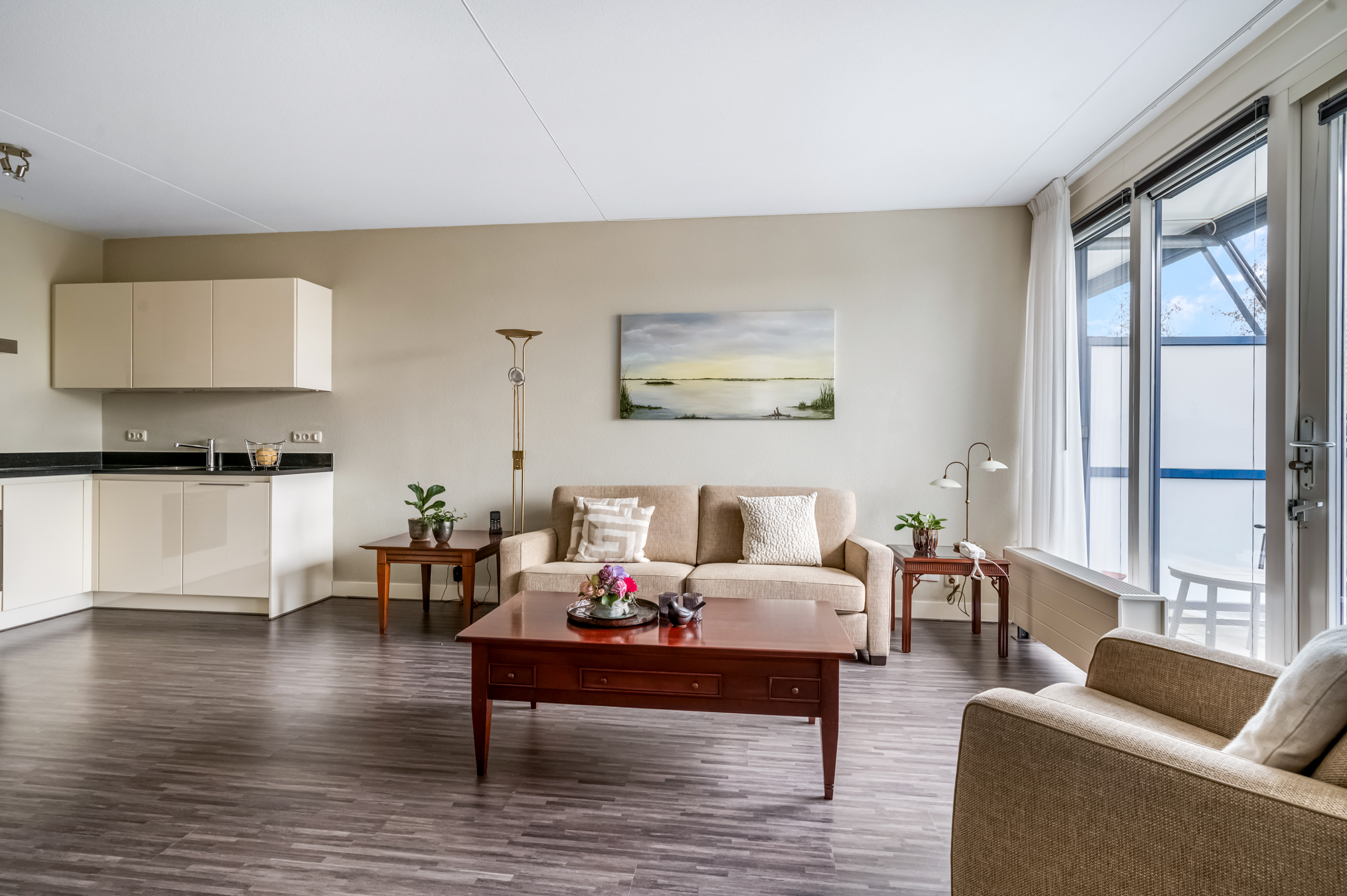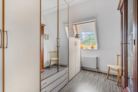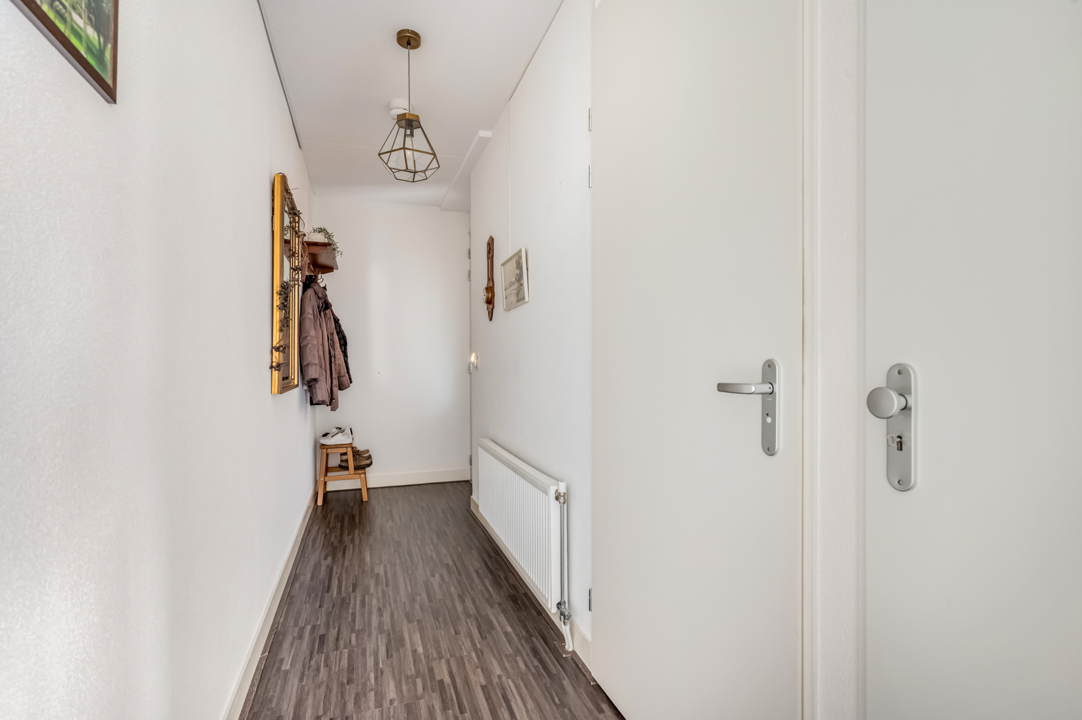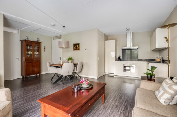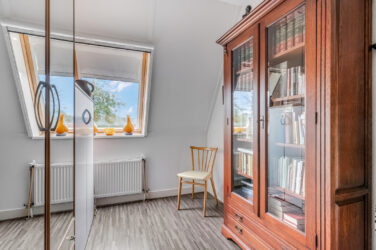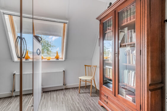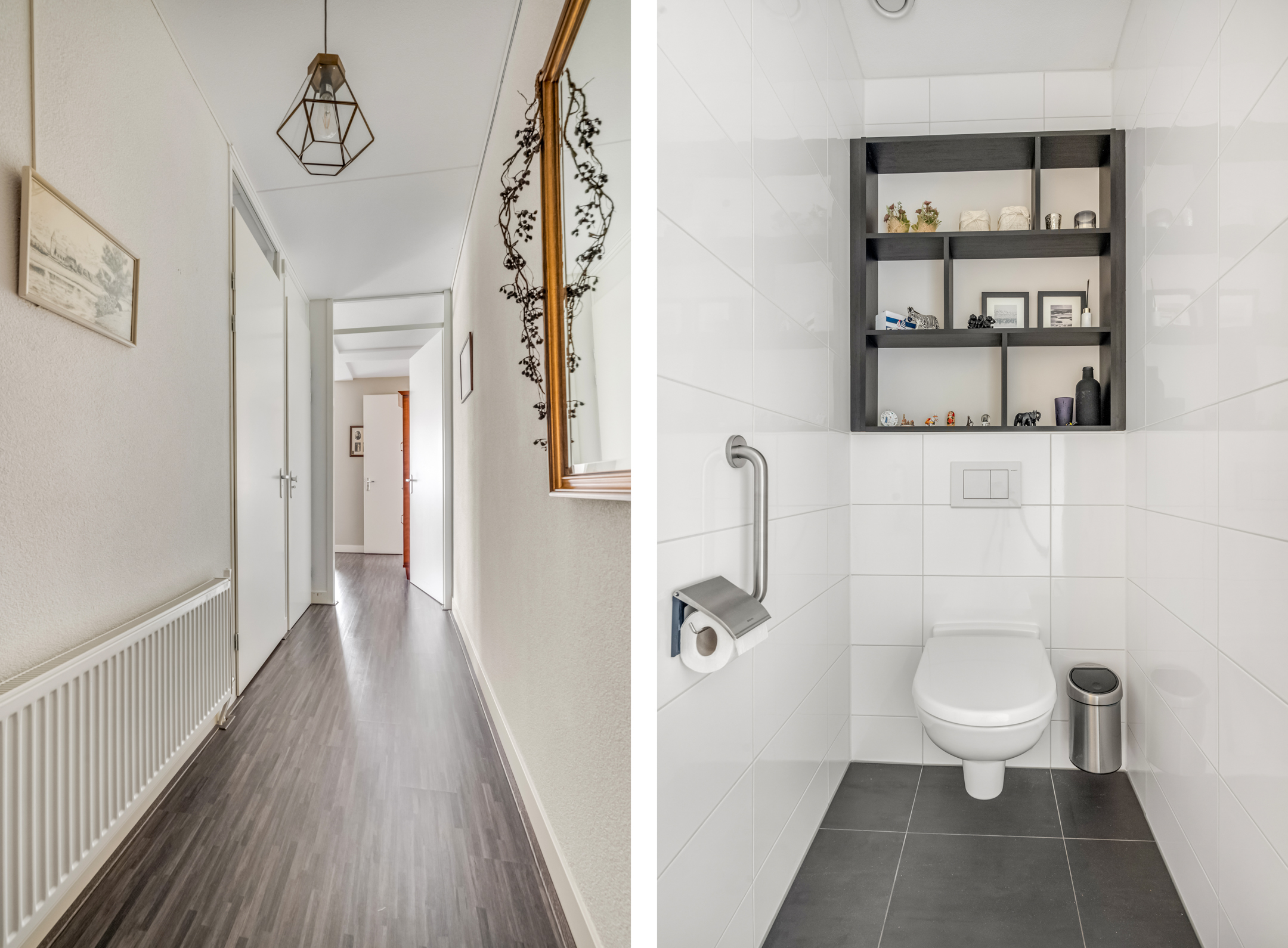 De lichte woonkamer heeft een schuifpui naar het balkon (voorzien van elektrisch bedienbaar screen en zicht over de omgeving) en is voldoende ruim voor het plaatsen van een fijne zitruimte en eettafel. De open keuken beschikt over een hoogglans hoekopstelling voorzien van composiet werkblad, bovenkasten en inbouwapparatuur zoals een 4-pits inductieplaat, RVS-afzuigkap, koelkast, vriezer, vaatwasser en oven. Aangrenzend aan de keuken bevindt zich een praktische berging met aansluitingen voor wassen- en drogen en CV-opstelling. Het appartement heeft 2 slaapkamers beiden voorzien van een dakvenster met verduistering en horren. De 2e slaapkamer is thans in gebruik als kleedruimte, maar ook ideaal als logeer- of studeerkamer. De geheel betegelde badkamer is uitgevoerd met een badkamermeubel met dubbele wastafel en spiegel, ligbad, inloopdouche (beiden met thermostaatkraan) en een designradiator.