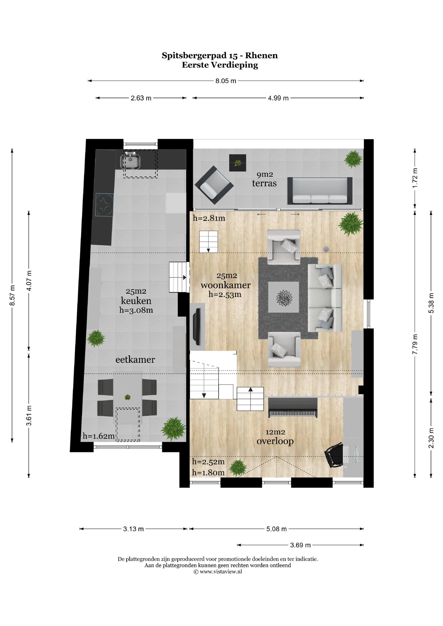 -Woonoppervlak 177 m², inhoud 690 m³, perceeloppervlak 135 m².