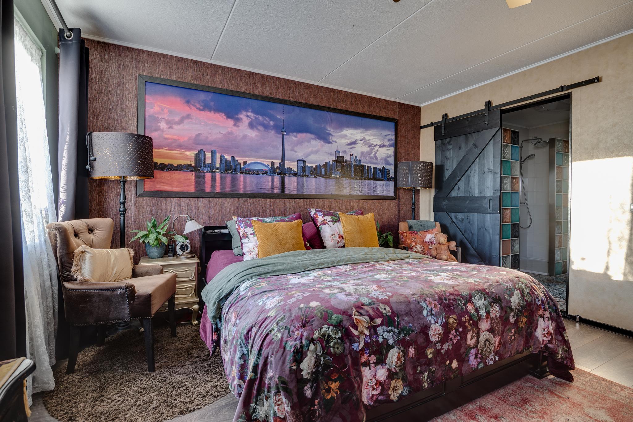 Via de hal is er toegang tot de ruime en sfeervolle ouderslaapkamer die is voorzien van een walk-in closet en aangrenzende en suite badkamer (afsluitbaar met een schuifdeur). Deze moderne en smaakvolle badkamer is voorzien van een fijne inloopdouche, dubbele wastafel en spiegel. Vanuit de hal is er tevens toegang tot een praktische bergruimte met CV-opstelling en aansluitingen voor wassen- en drogen.