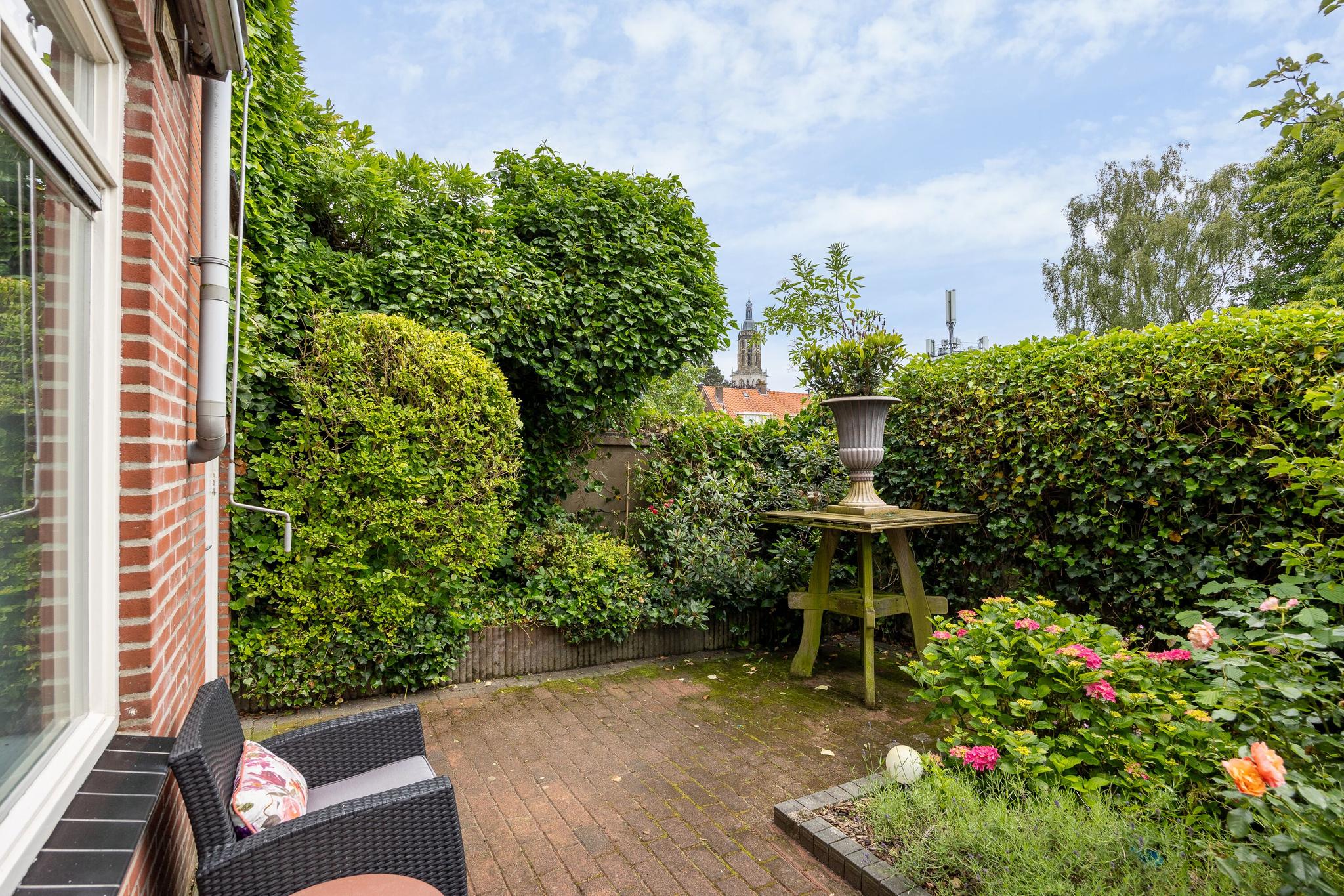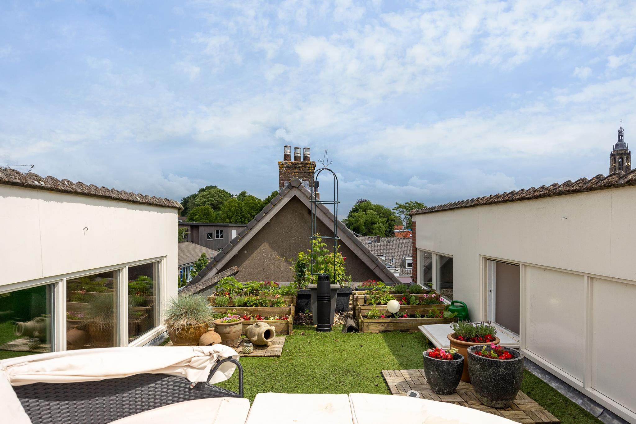 Buitenruimten: Aan de achterzijde van de woning is er een fijne besloten stadstuin die is gelegen op het zuiden. Vanuit de tuin is er toegang tot een royale bergruimte/kelder onder de garage. Het balkon grenzend aan de woonkamer is eveneens gelegen op het zonnige zuiden. Tot slot is er een leuk extraatje; vanuit de woonkamer is er, via een losse steektrap, toegang tot het dak. Hier kan, na de kleine klim, heerlijk worden genoten van de sterrenhemel.