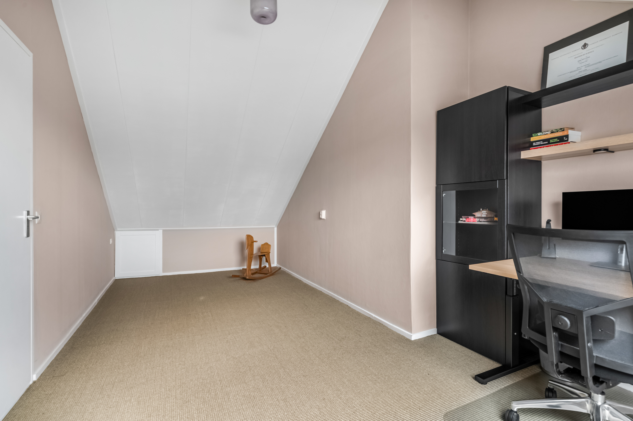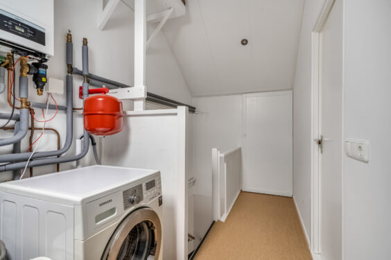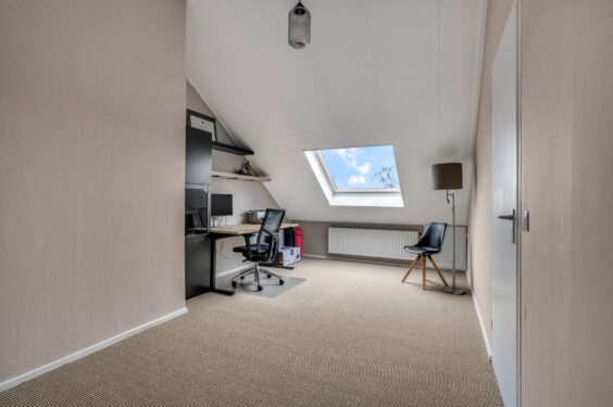 2e verdieping: De tweede verdieping is eveneens verrassend ruim. Op de voorzolder vind je de aansluitingen voor de wasmachine, droger en de cv-combiketel. Daarnaast biedt een royale vierde slaapkamer met groot dakraam volop licht en ruimte. Dankzij de knieschotten is er ook aan bergruimte geen gebrek.