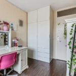 Overloop met trapopgang naar de 2e verdieping, 3 slaapkamers waarvan twee slaapkamers zijn gelegen aan de achterzijde van de woning en de 3e (ouder) slaapkamer met walk-in-closet aan de voorzijde van de woning.