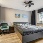 Alle slaapkamers zijn voorzien van elektrisch bedienbare rolluiken. De badkamer is geheel betegeld en heeft een bad, douchecabine beiden met thermostaatkraan, toilet, wastafelmeubel met spiegel, opbergkast en designradiator.
