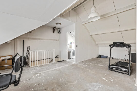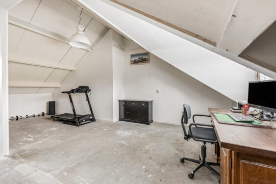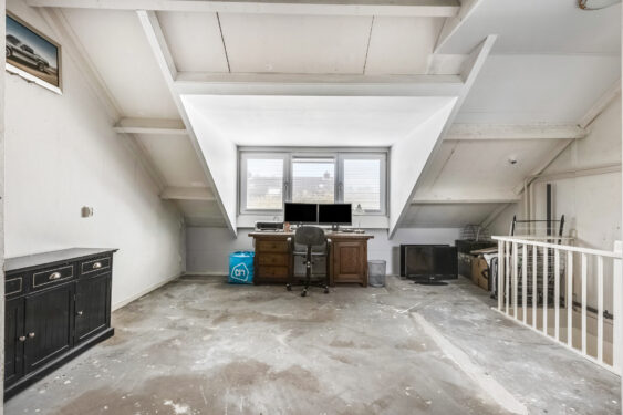 De open zolderruimte heeft een kunststof dakkapel en een aparte ruimte voorzien van CV-opstelling met was- en droogaansluitingen. De zolderruimte is zeer geschikt om extra slaapkamers te creëren.