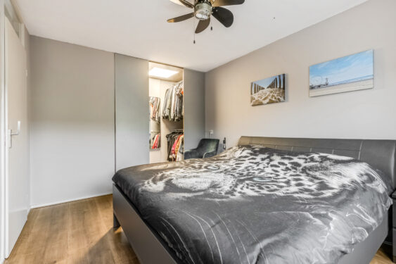 Overloop met trapopgang naar de 2e verdieping, 3 slaapkamers waarvan twee slaapkamers zijn gelegen aan de achterzijde van de woning en de 3e (ouder) slaapkamer met walk-in-closet aan de voorzijde van de woning.