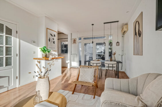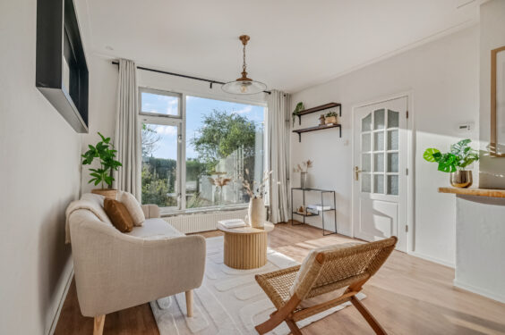 Dit knusse woonhuis beschikt over een lichte doorzonwoonkamer met open keuken, 3 slaapkamers en badkamer op de verdieping. De woning is grotendeels voorzien van kunststof kozijnen en airconditioning op de begane grond en verdieping.