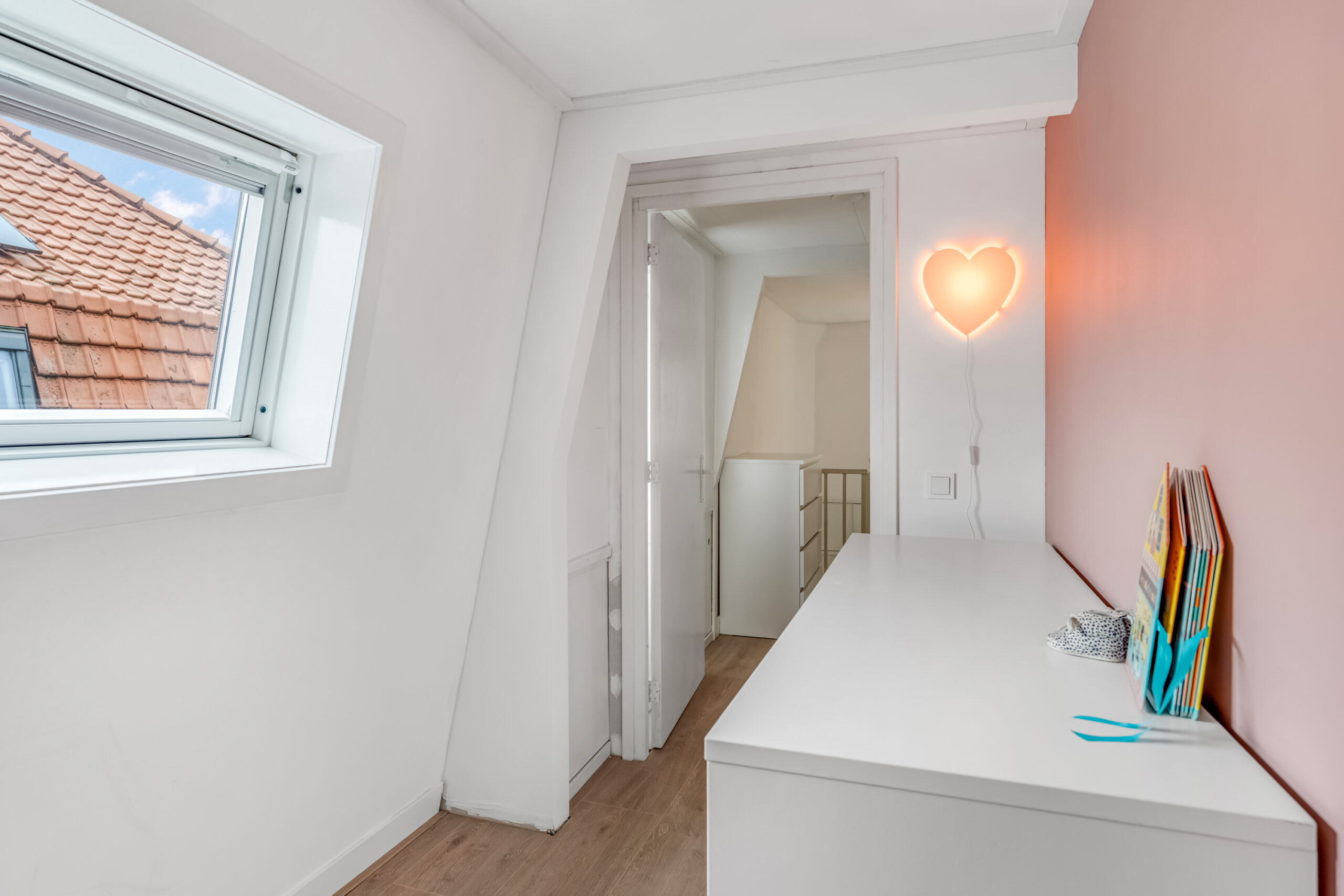 Tweede verdieping: Via een vaste trap bereik je de tweede verdieping. Hier is een derde werk- of slaapkamer gerealiseerd met dakraam en opstelling van de cv-ketel. Een fijne extra ruimte die je flexibel kunt gebruiken.